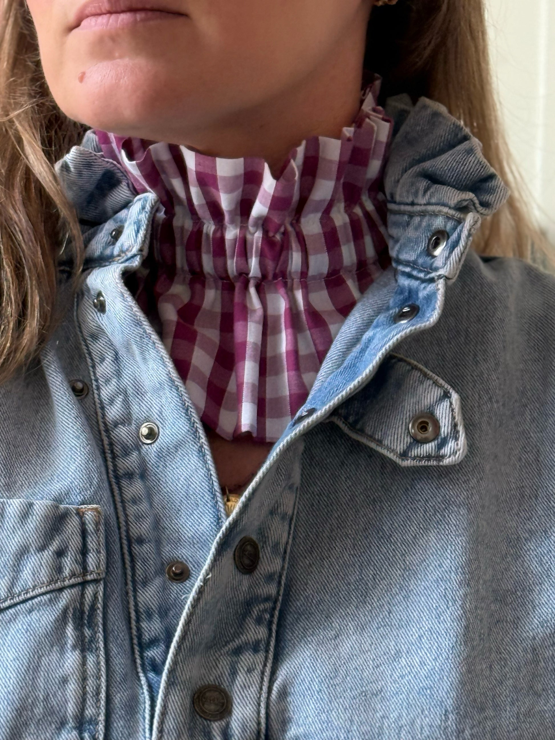Apportez élégance et originalité à vos tenues avec ce col amovible en vichy aubergine. Sa teinte profonde, actuelle et résolument mode s’associe aussi bien à une robe qu’à un pull ou une chemise, pour transformer instantanément votre look.
