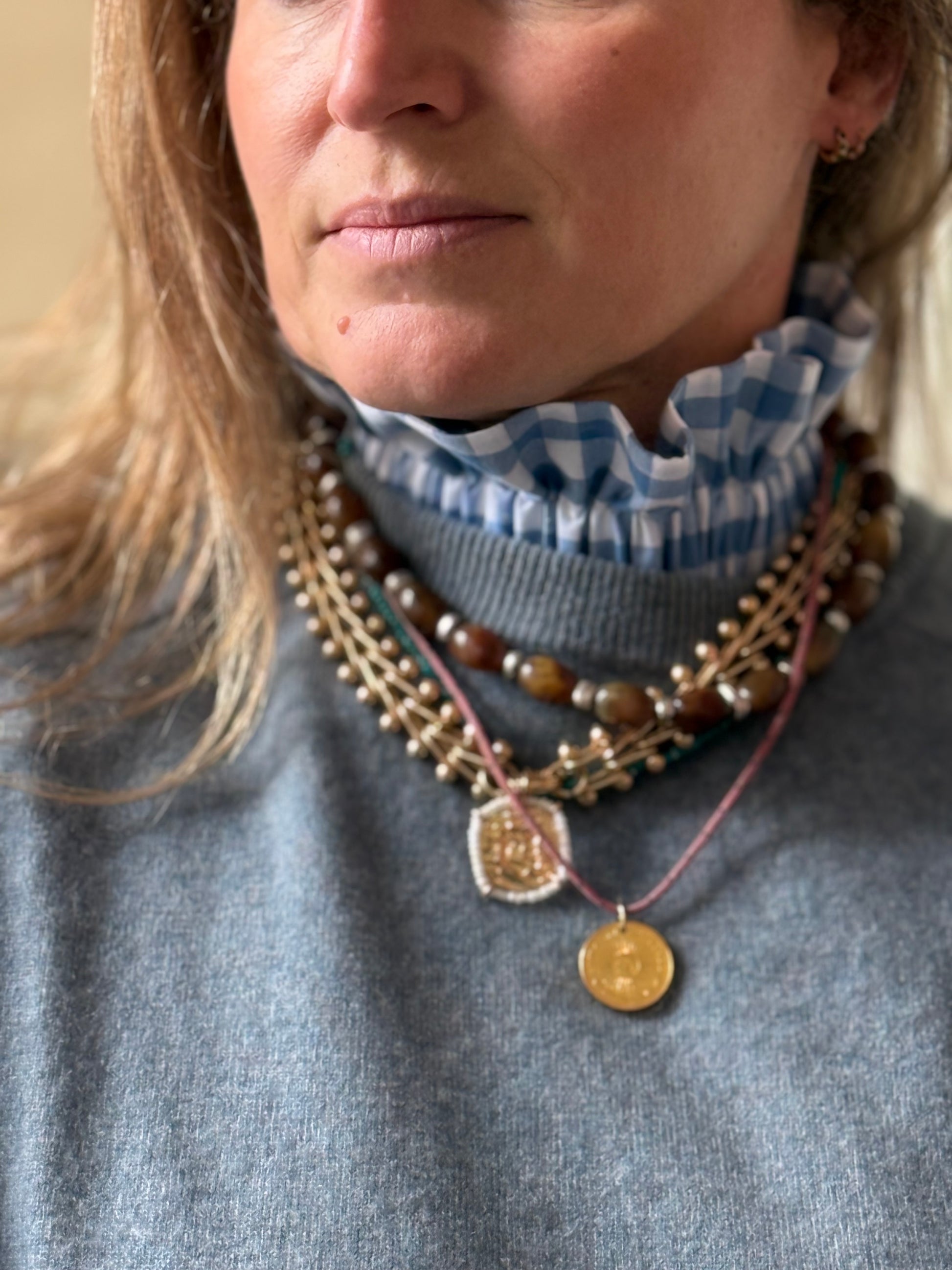 Apportez une note de fraîcheur et de délicatesse à vos tenues avec ce col amovible en vichy bleu jean. Son motif intemporel et élégant s’associe aussi bien à une robe qu’à un pull ou une chemise, pour transformer instantanément votre look.