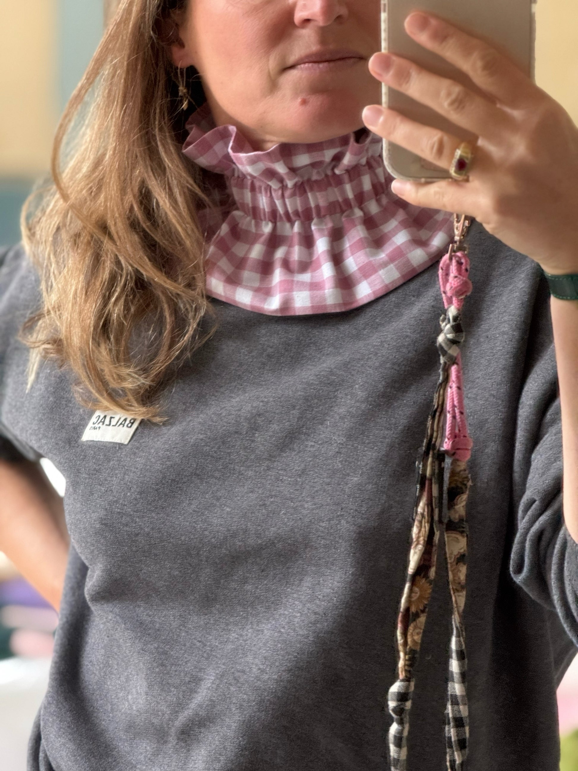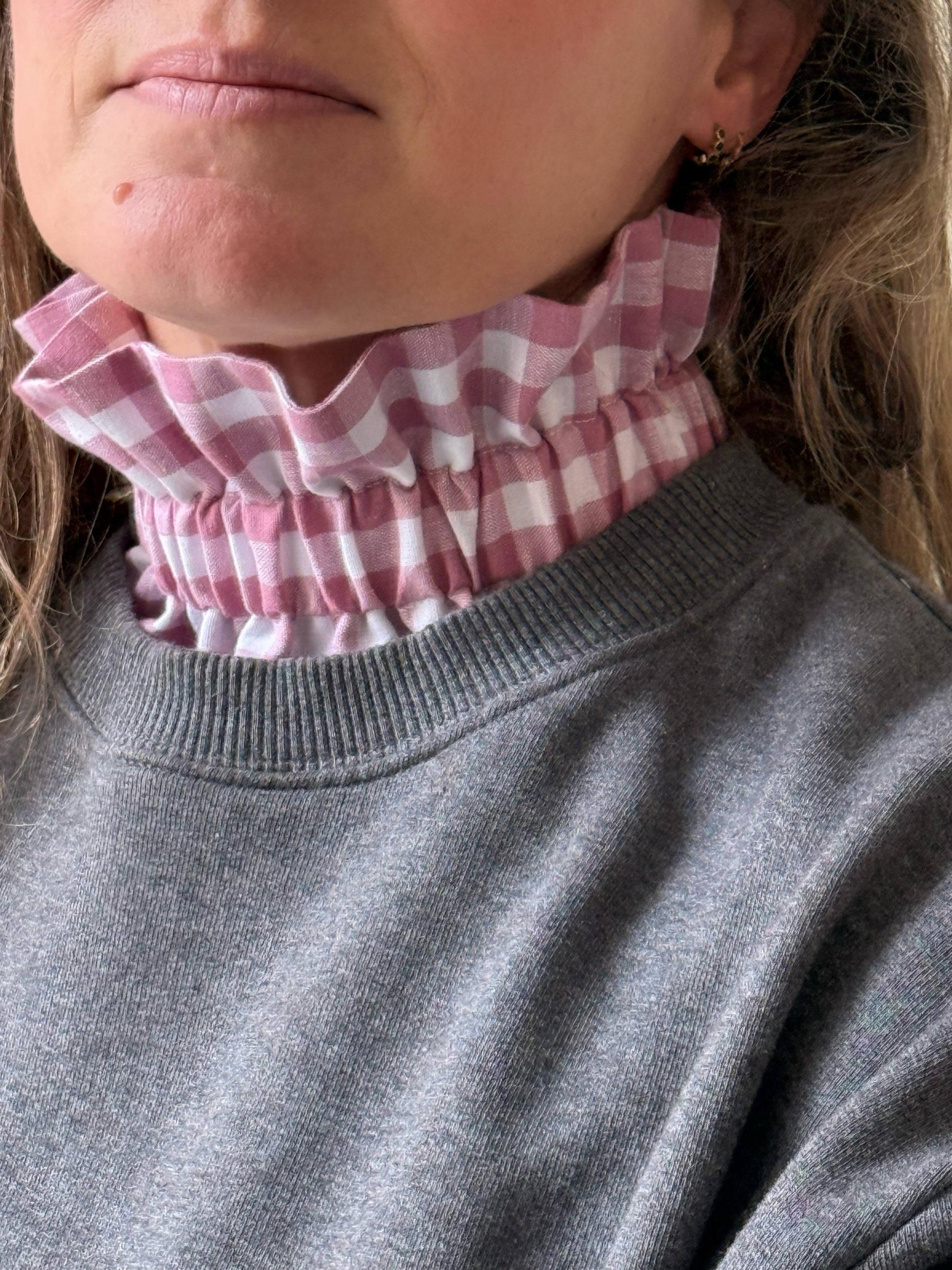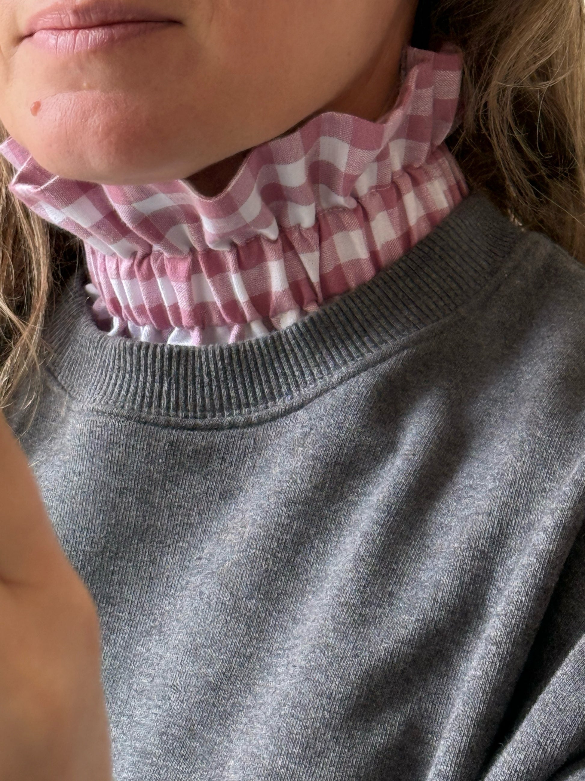 Apportez une note délicate et élégante à vos tenues avec ce col amovible en vichy rose poudré. Son motif tendre et raffiné s’associe aussi bien à une robe qu’à un pull ou une chemise, pour transformer instantanément votre look.