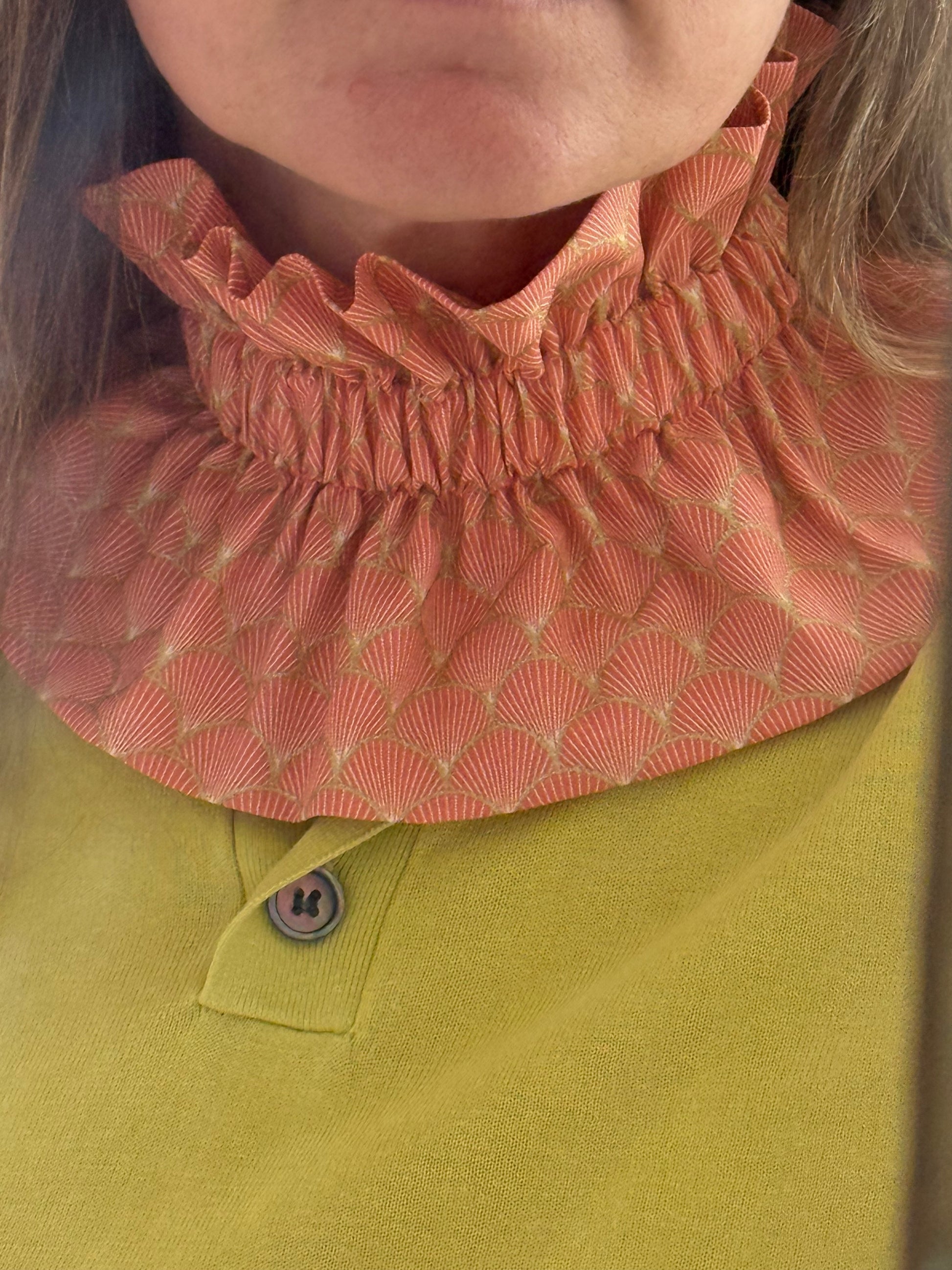 En mêlant nos deux univers et en reprenant les codes emblématiques de nos marques, nous avons imaginé une mini capsule inédite, dont ce col est l’une des créations emblématiques.