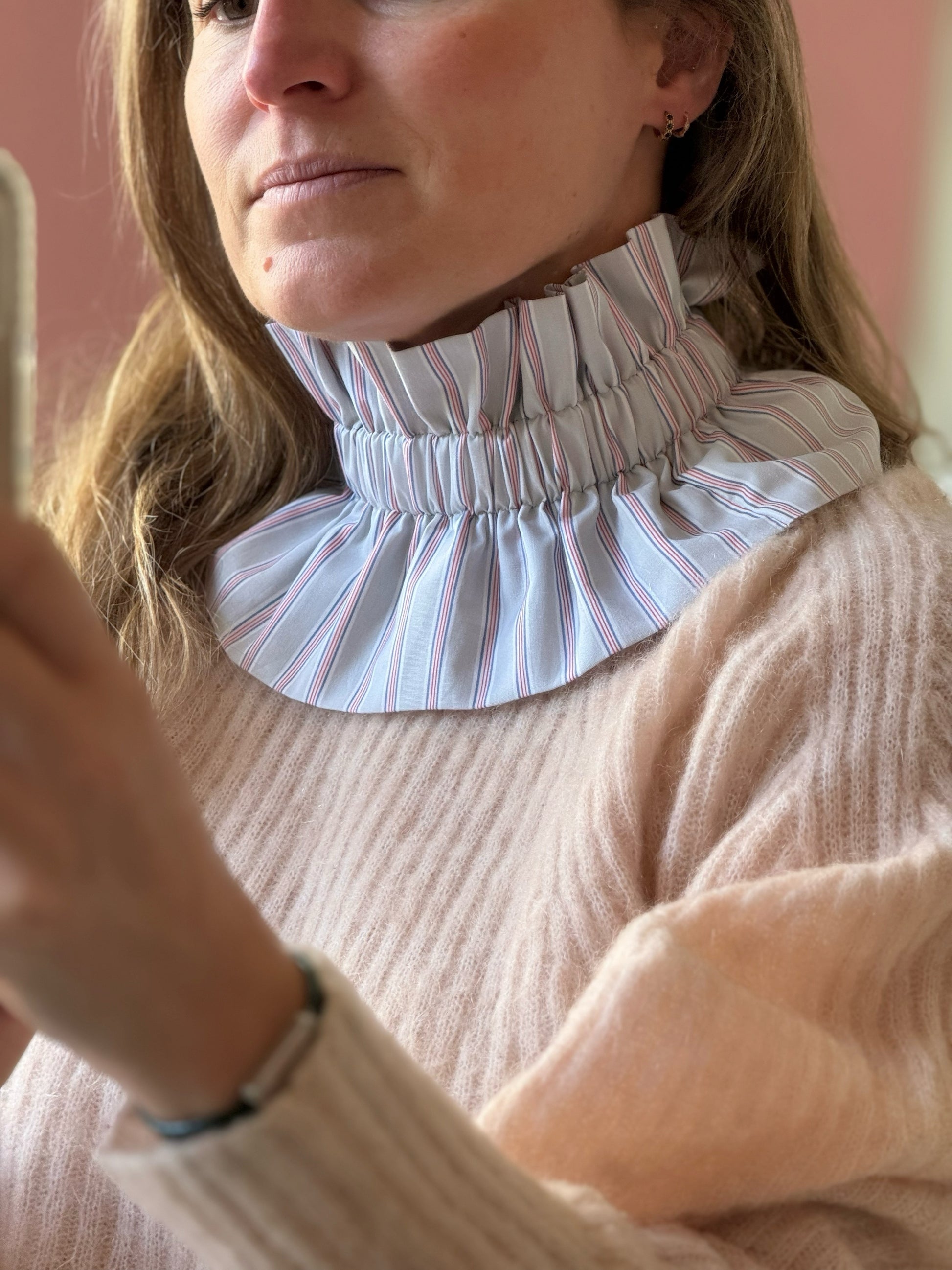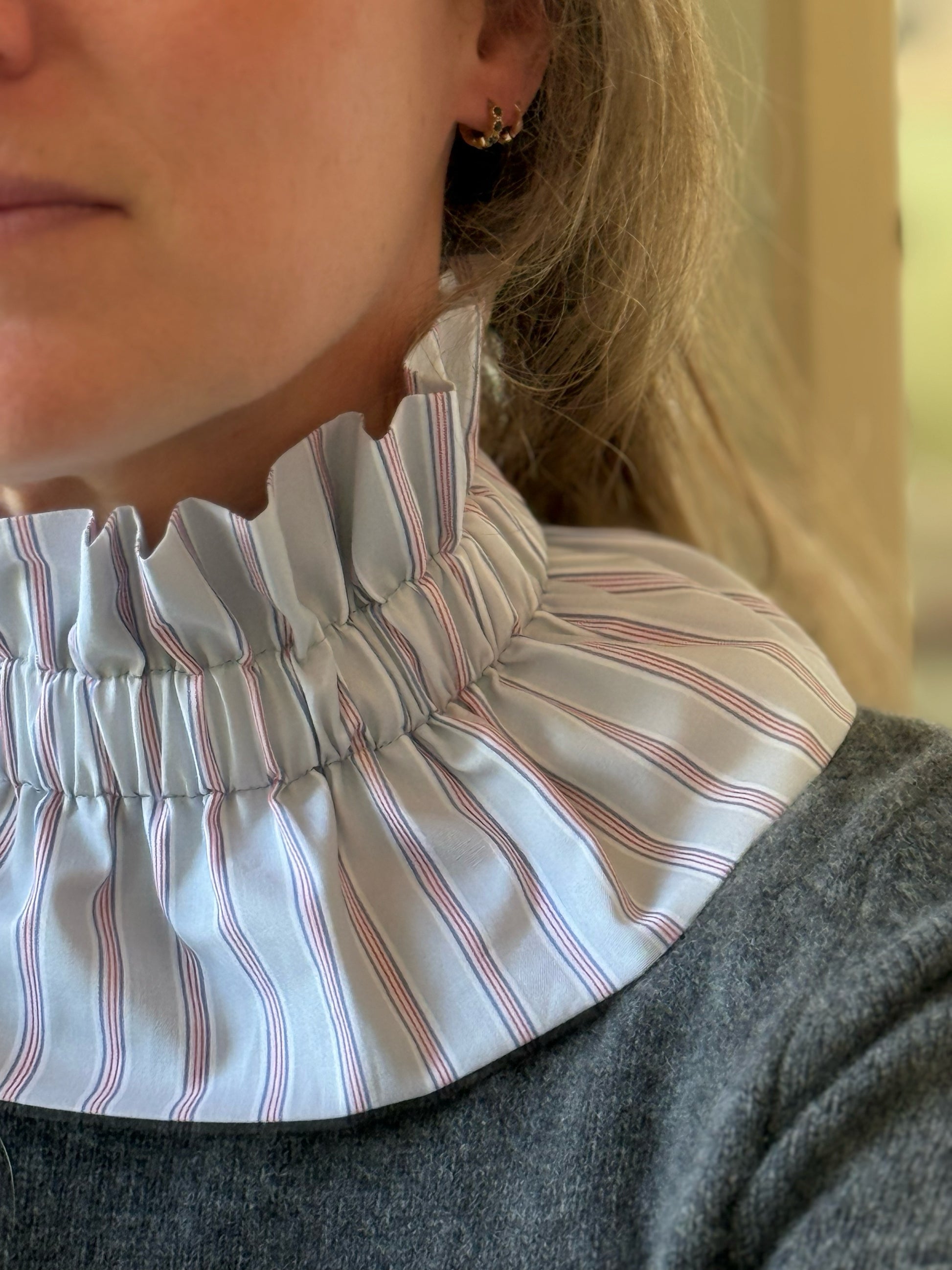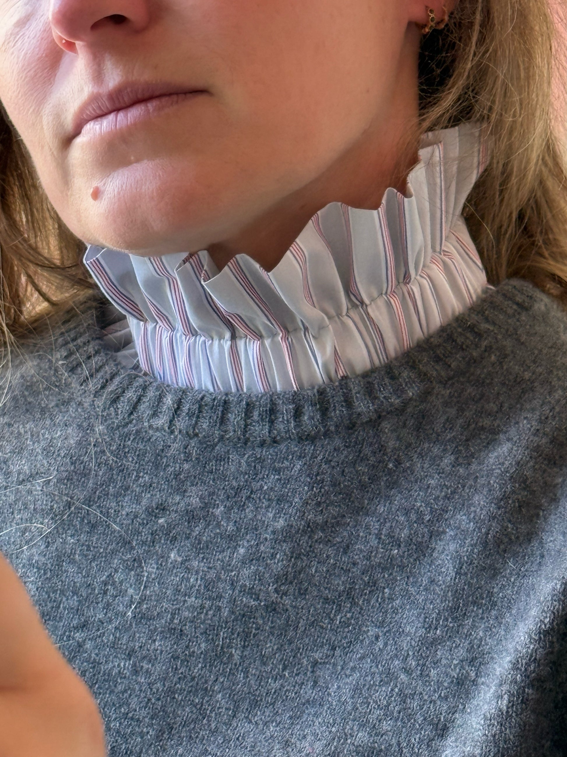 Col gris perle rayures rouges et bleues
