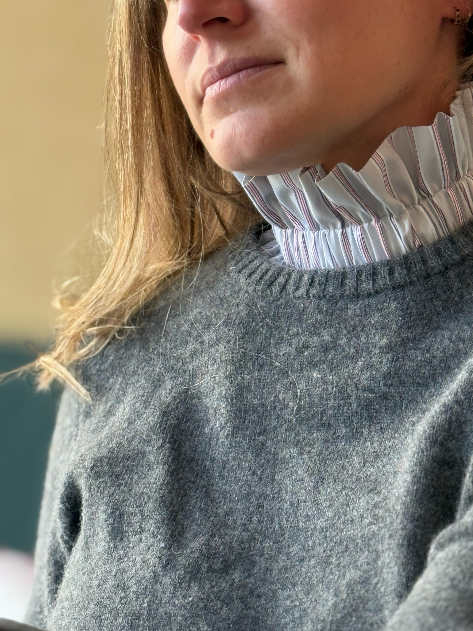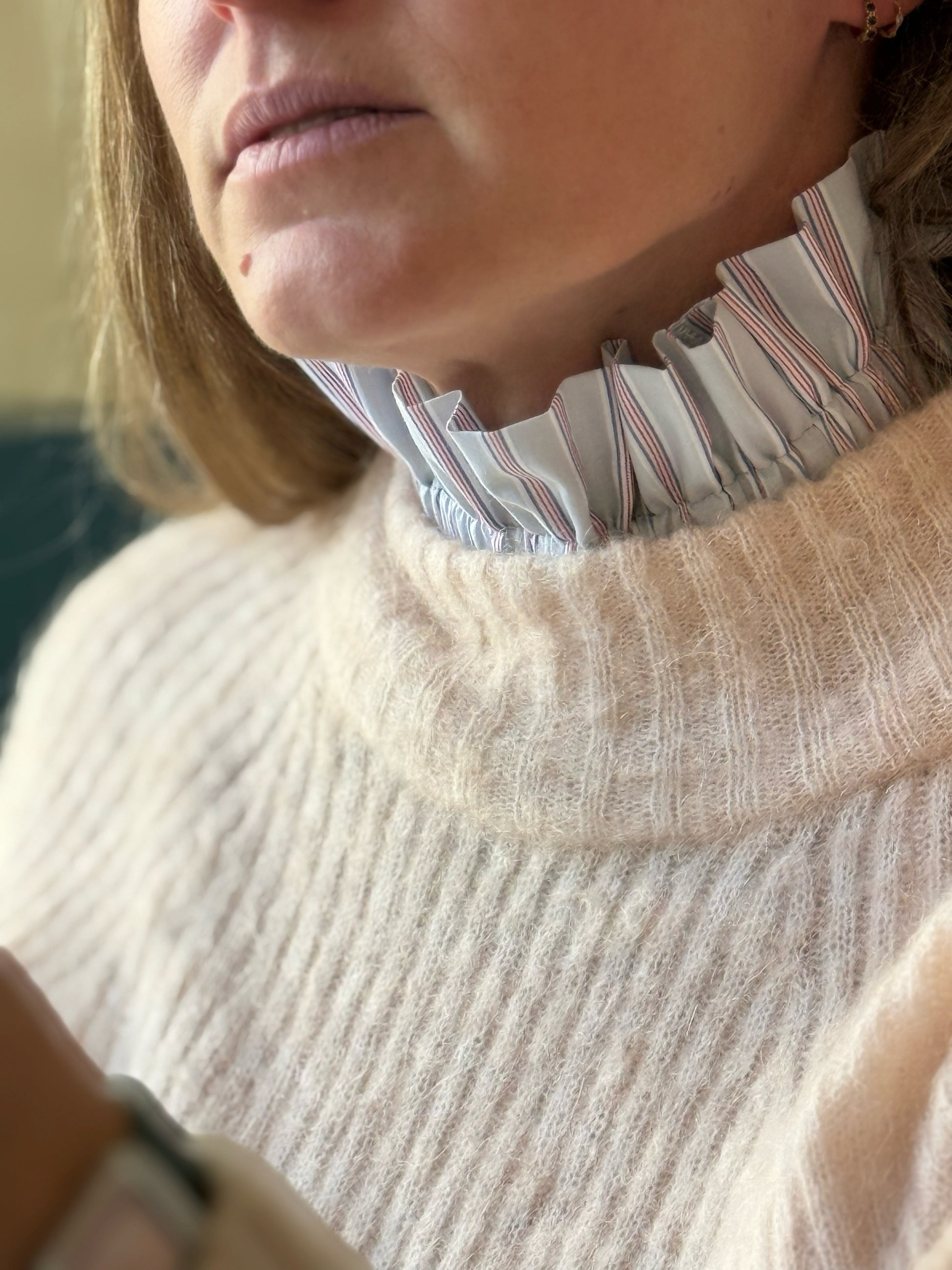 Ajoutez une touche d'élégance et de caractère à vos tenues avec ce col amovible à rayures fond Terracota tout doux et rayures jaunes et vertes, un accessoire résolument intemporel. il apporte l'élégance d'un chemise sans les inconfort de la superposition