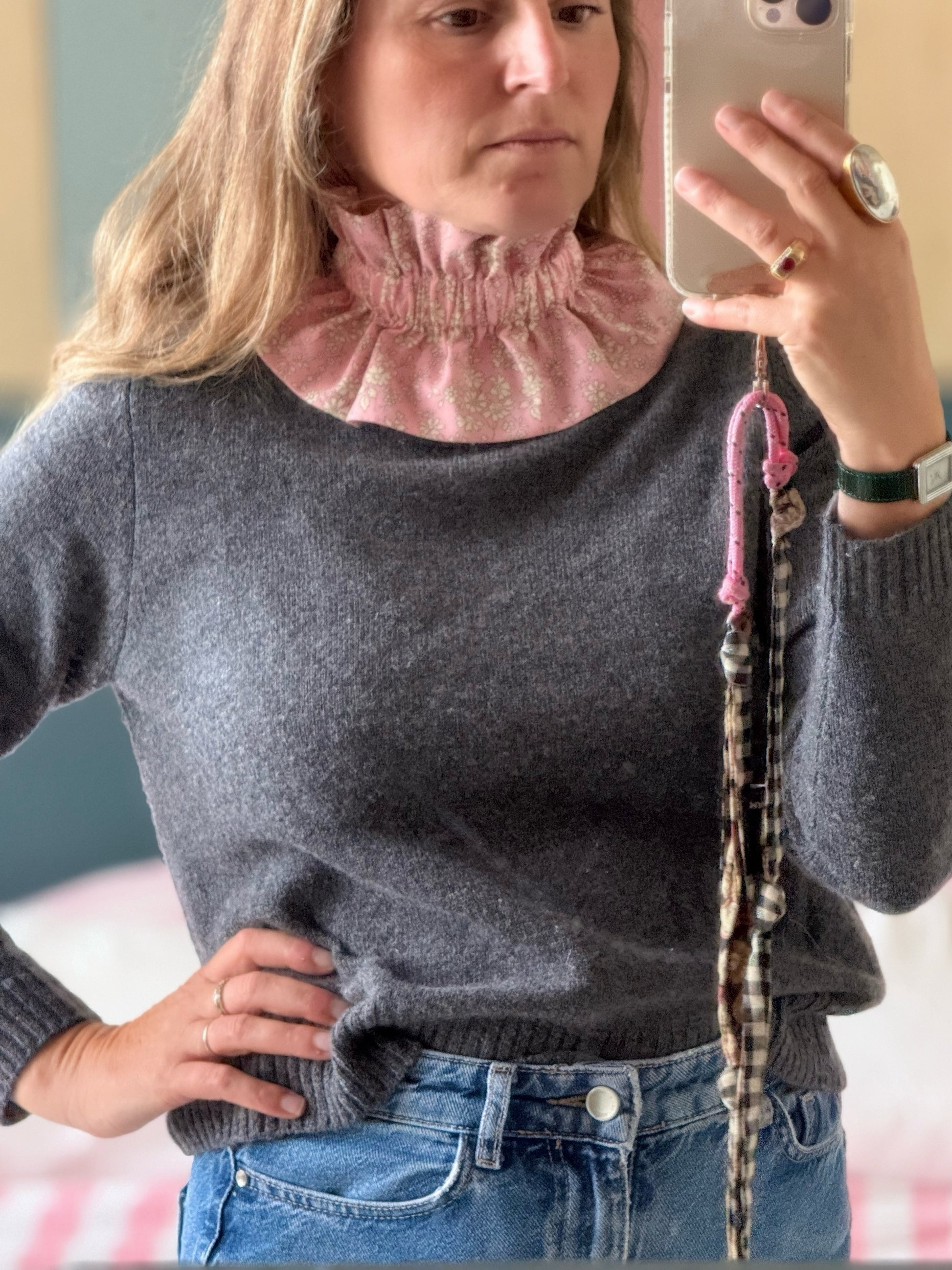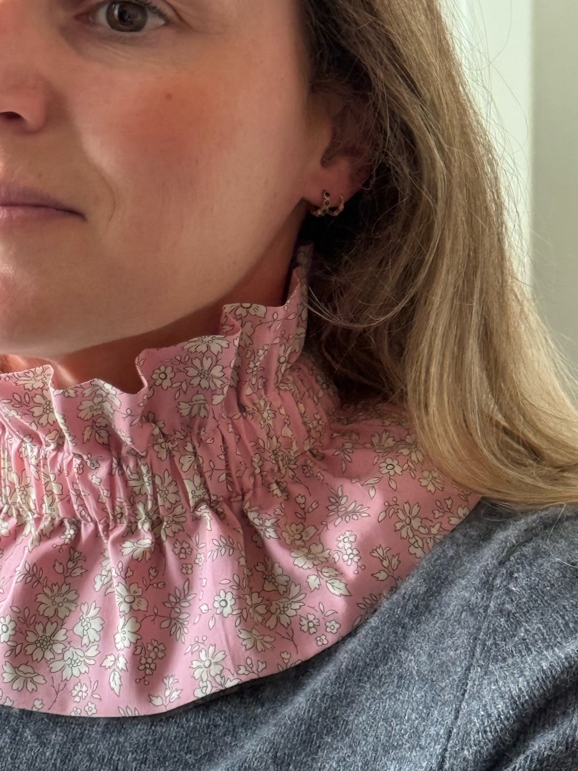 Ce col en Liberty London Capel nude charme par son motif floral délicat et sa teinte poudrée, subtile et raffinée. Il se pose sur vos looks en un instant pour leur offrir une touche élégante et discrète, idéale pour illuminer le quotidien comme les occasions spéciales.