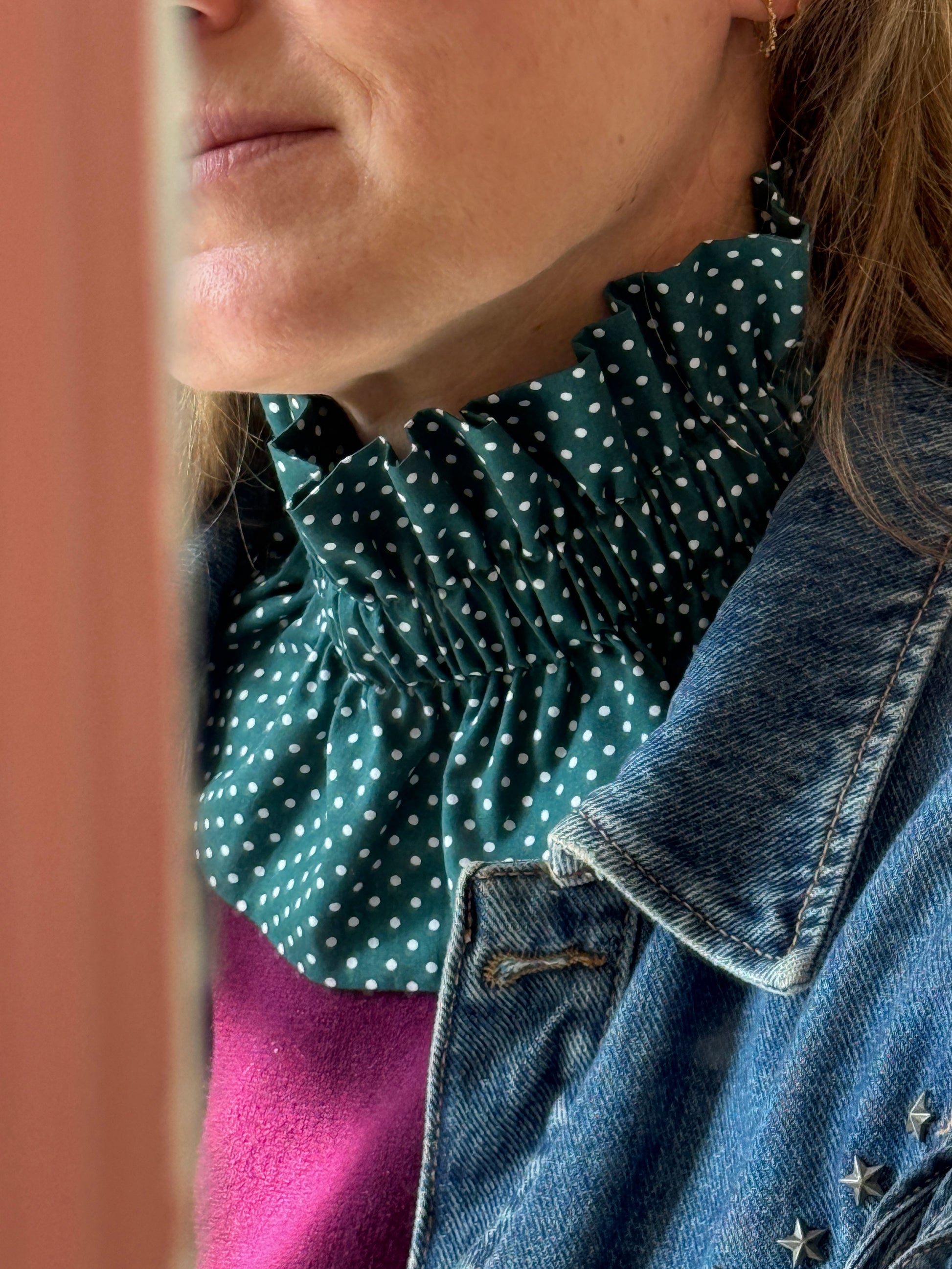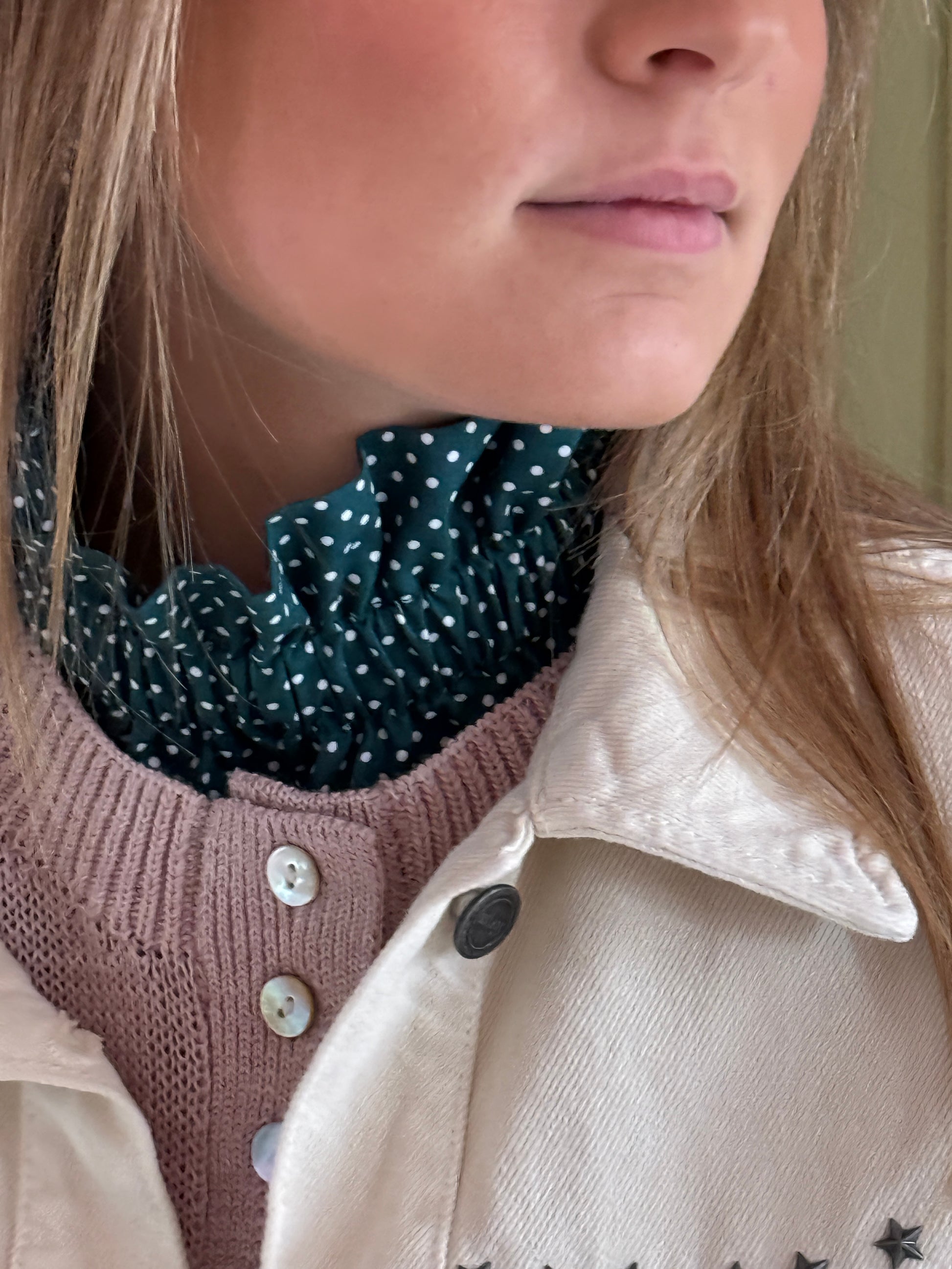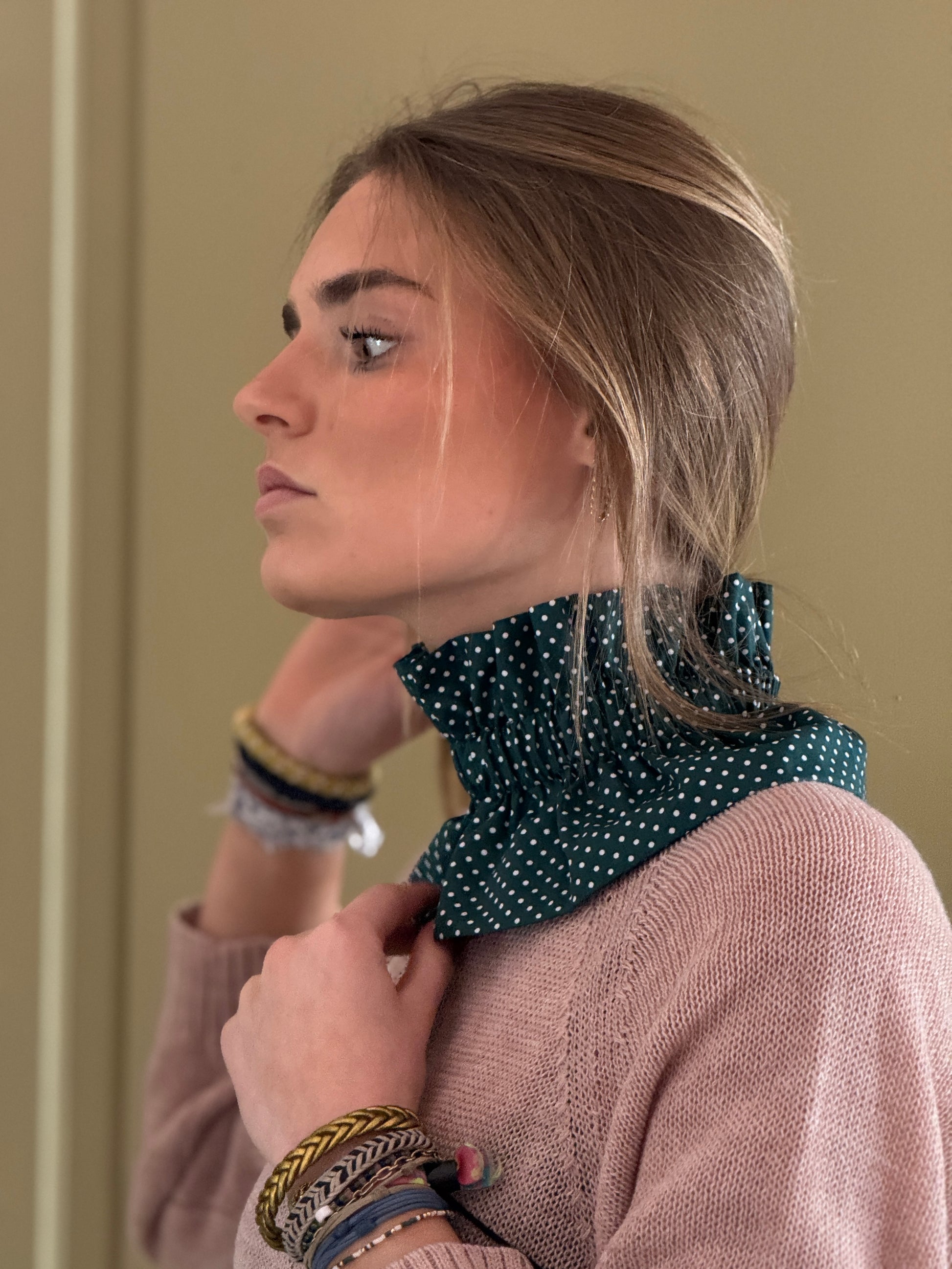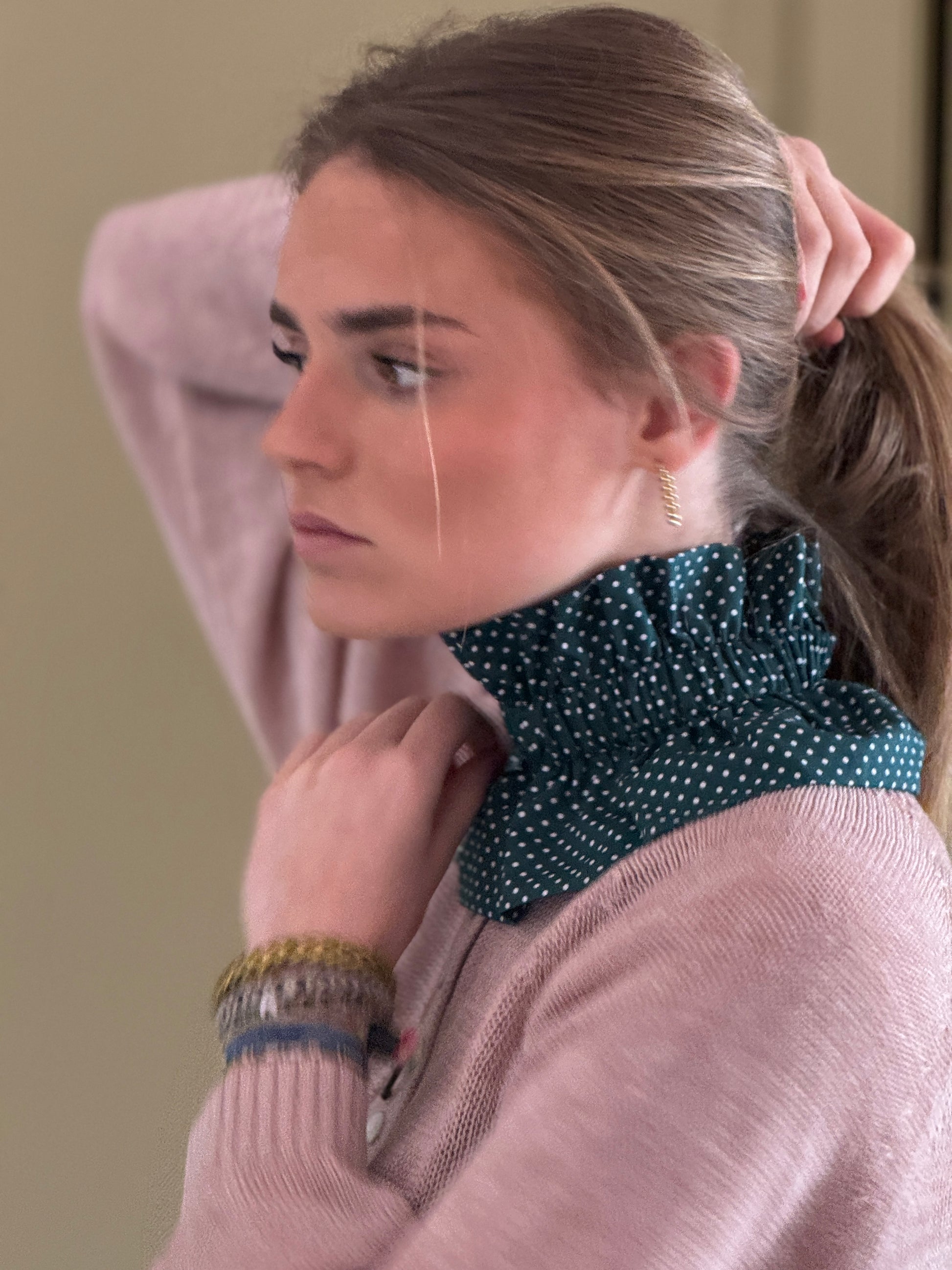 Préparez-vous : l'année 2026 sera celle du petit pois ! Icône du chic intemporel, le motif à pois s'invite chez Ma Prune Céleste dans une déclinaison rafraîchissante : en vert et petits pois blancs intemporels, ce col en coton est une véritable cure de fraîcheur pour vos tenues estivales.