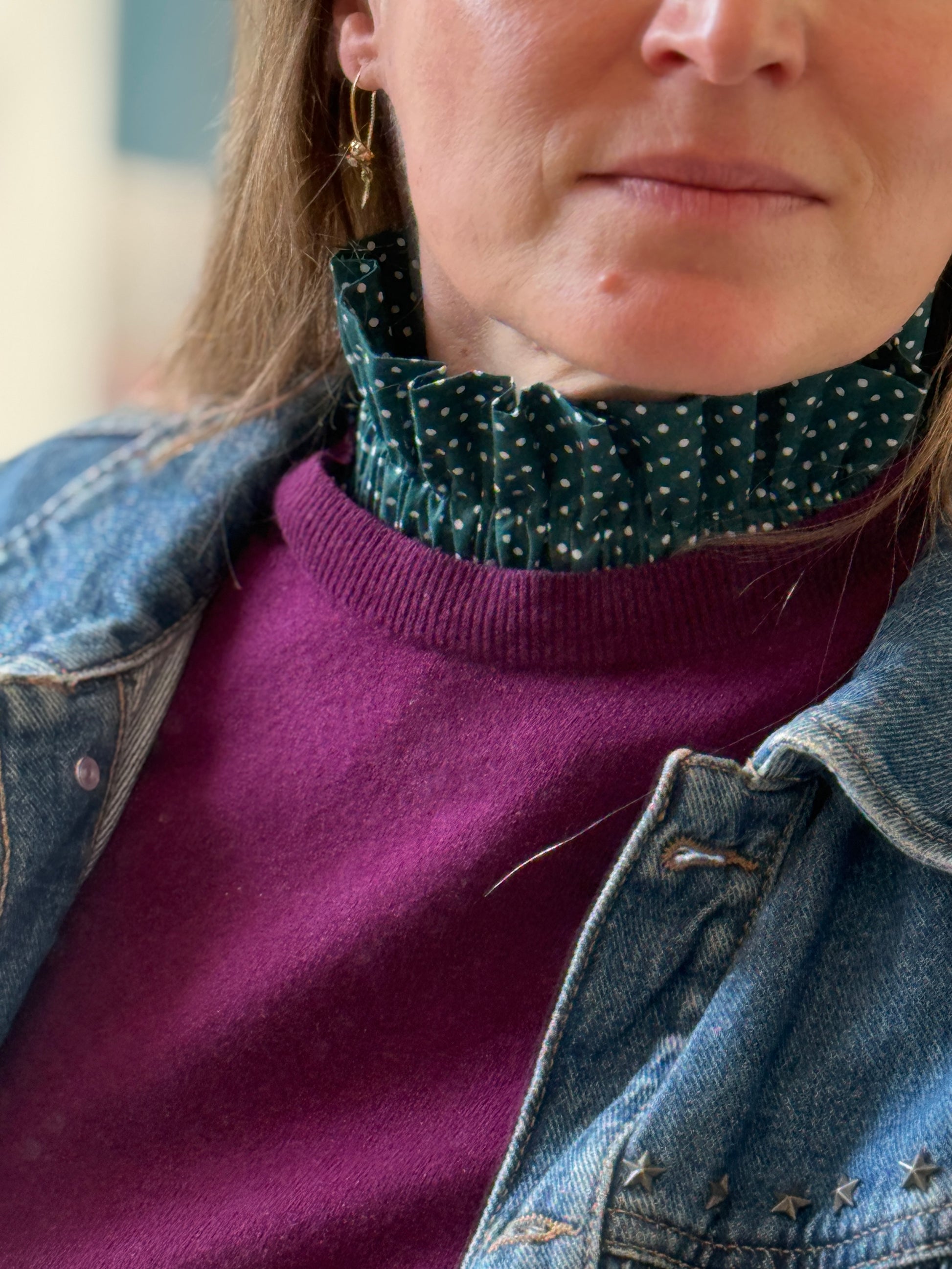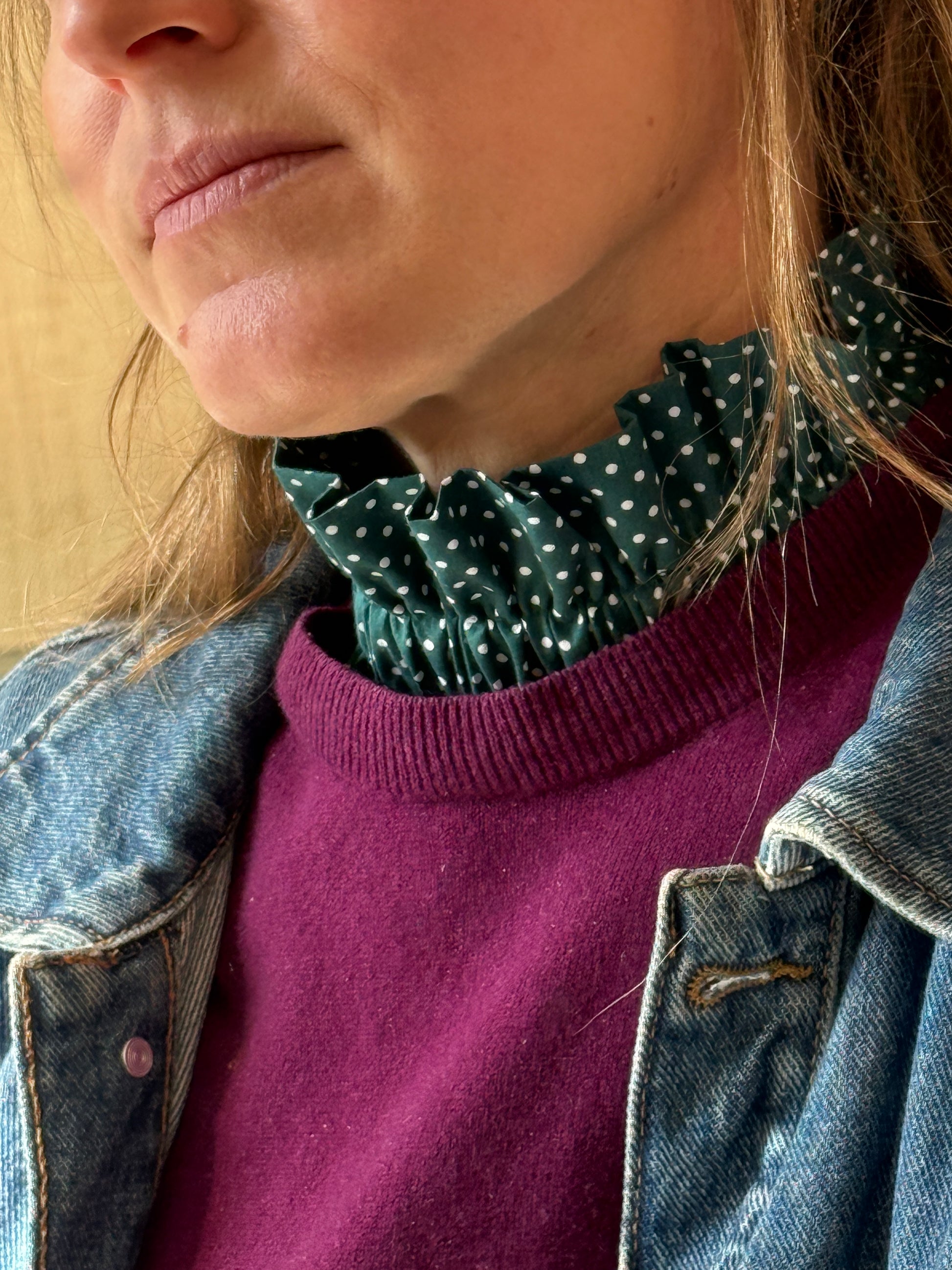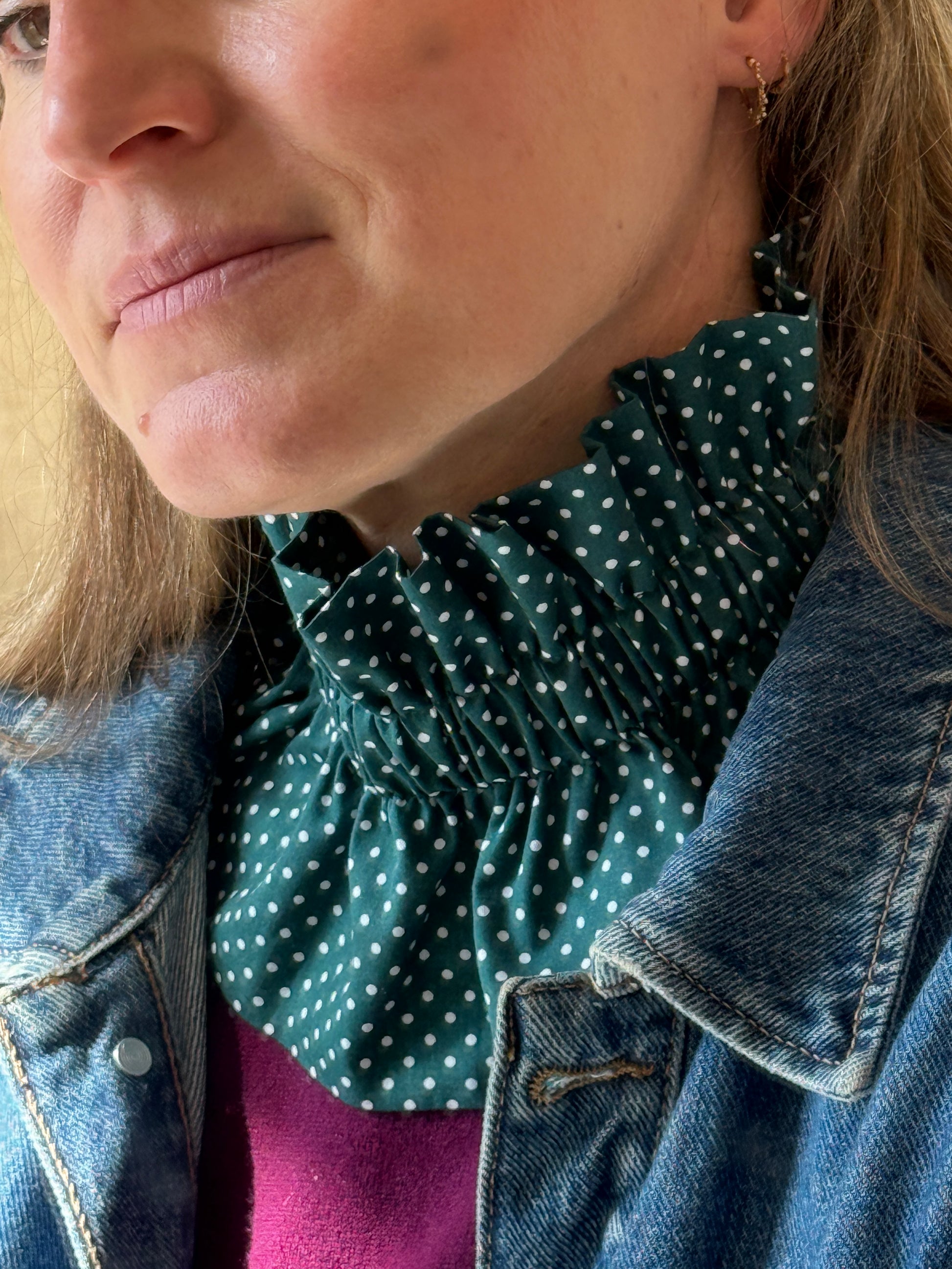 Préparez-vous : l'année 2026 sera celle du petit pois ! Icône du chic intemporel, le motif à pois s'invite chez Ma Prune Céleste dans une déclinaison rafraîchissante : en vert et petits pois blancs intemporels, ce col en coton est une véritable cure de fraîcheur pour vos tenues estivales.