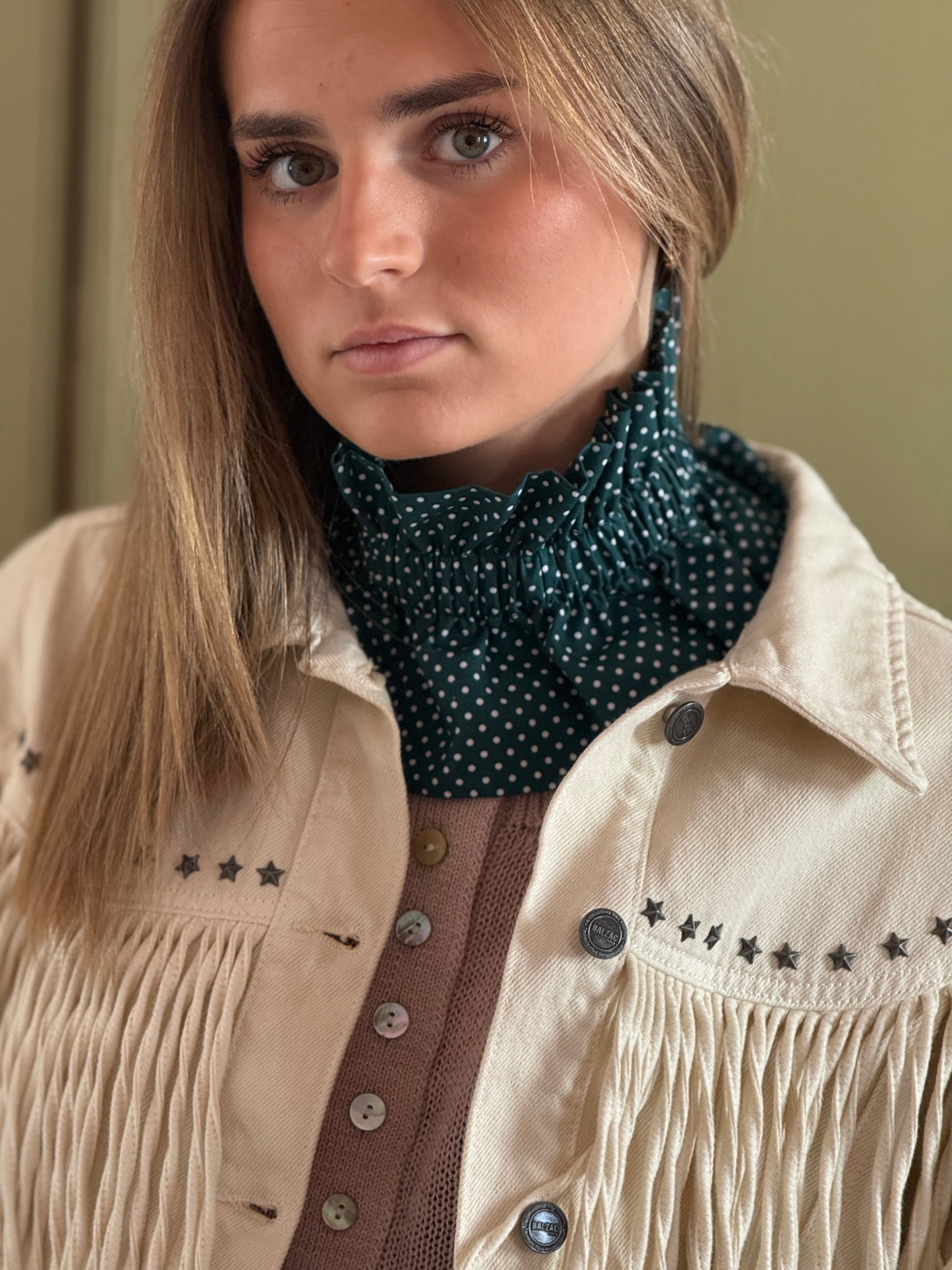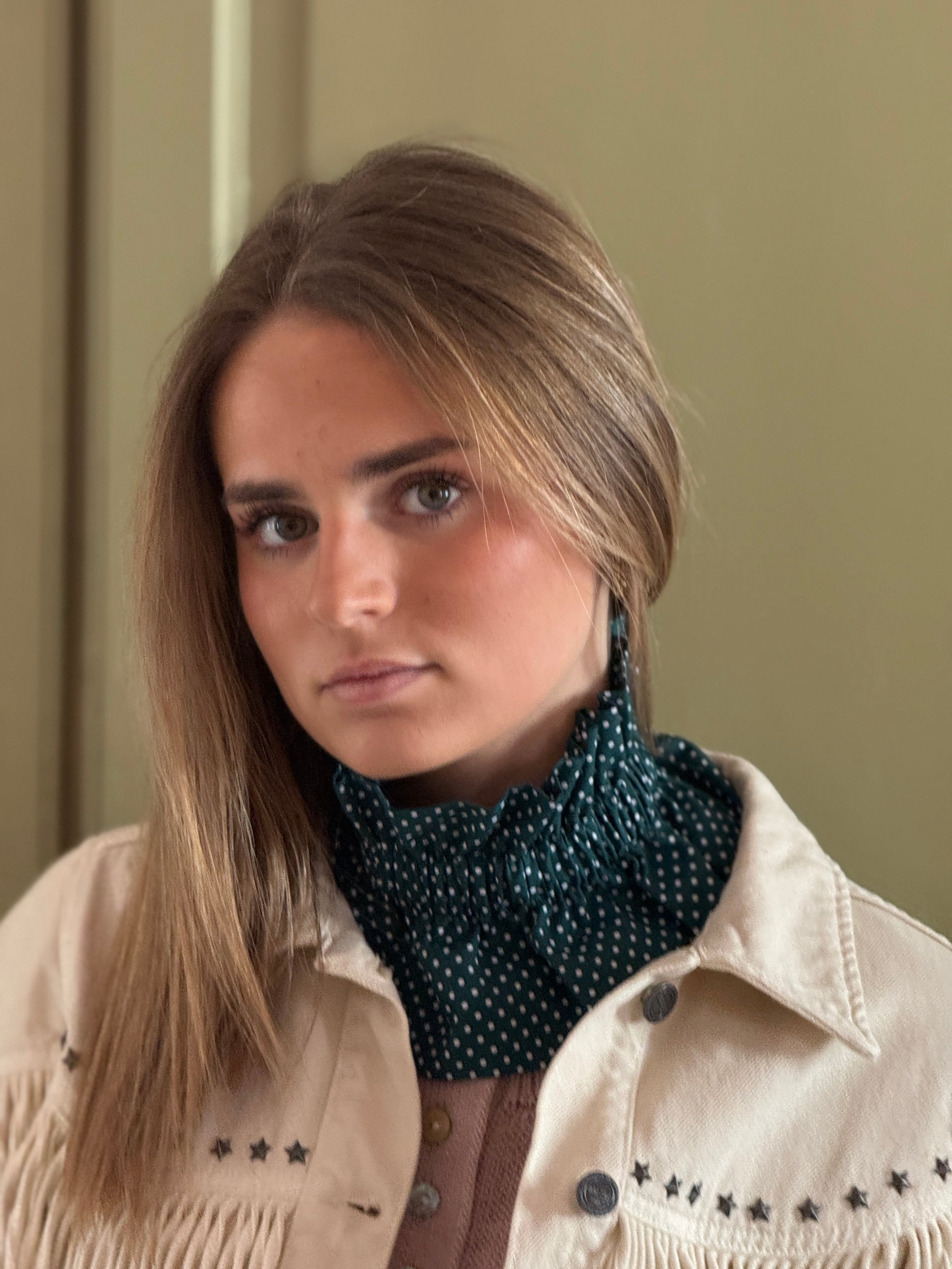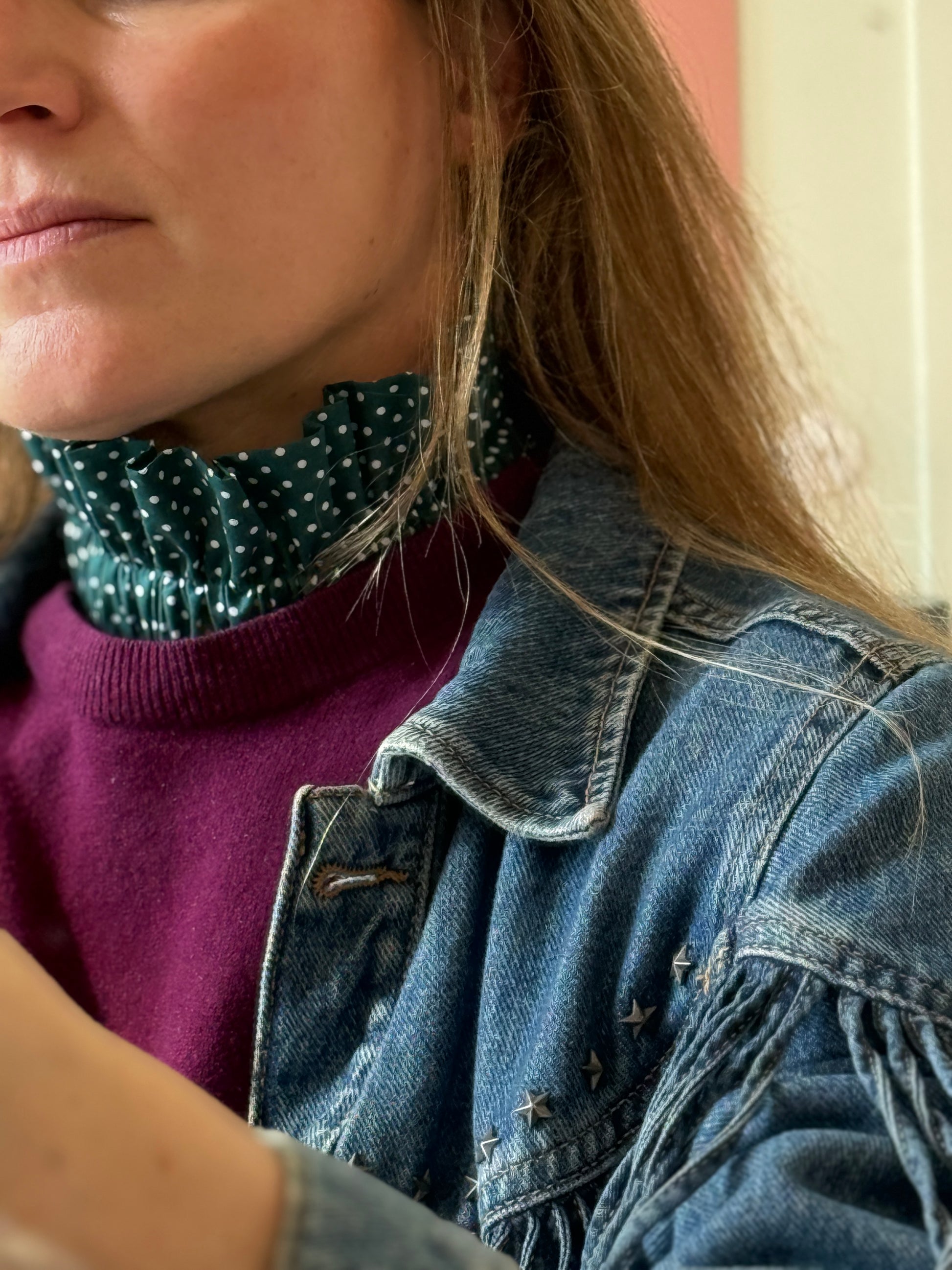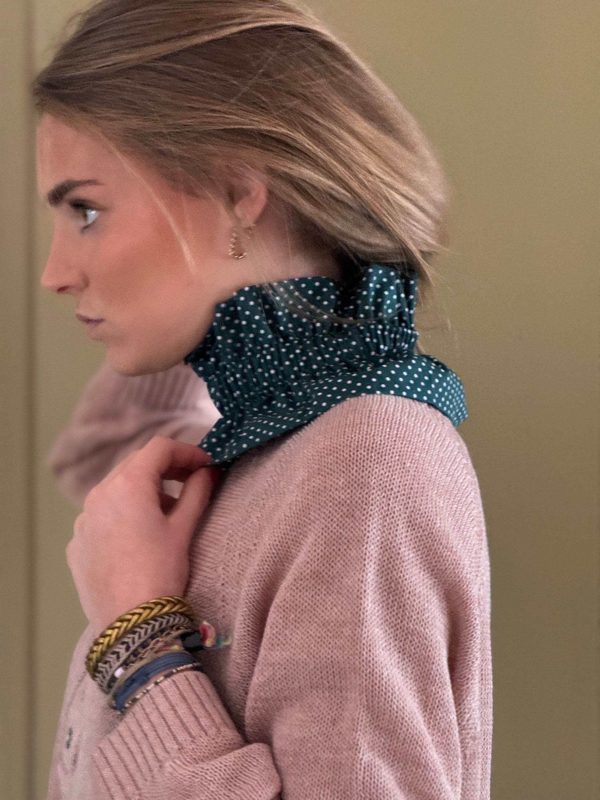 Préparez-vous : l'année 2026 sera celle du petit pois ! Icône du chic intemporel, le motif à pois s'invite chez Ma Prune Céleste dans une déclinaison rafraîchissante : en vert et petits pois blancs intemporels, ce col en coton est une véritable cure de fraîcheur pour vos tenues estivales.
