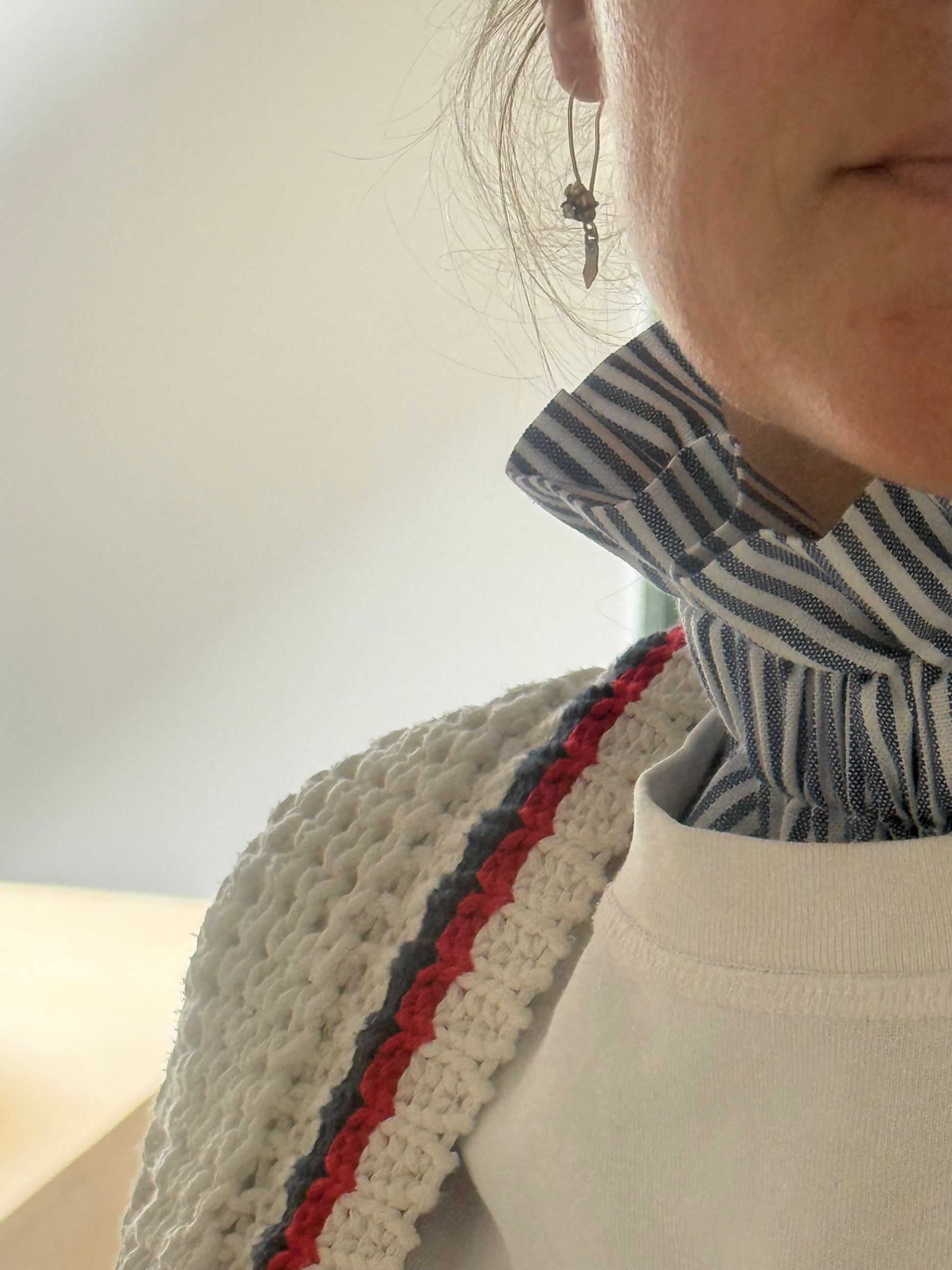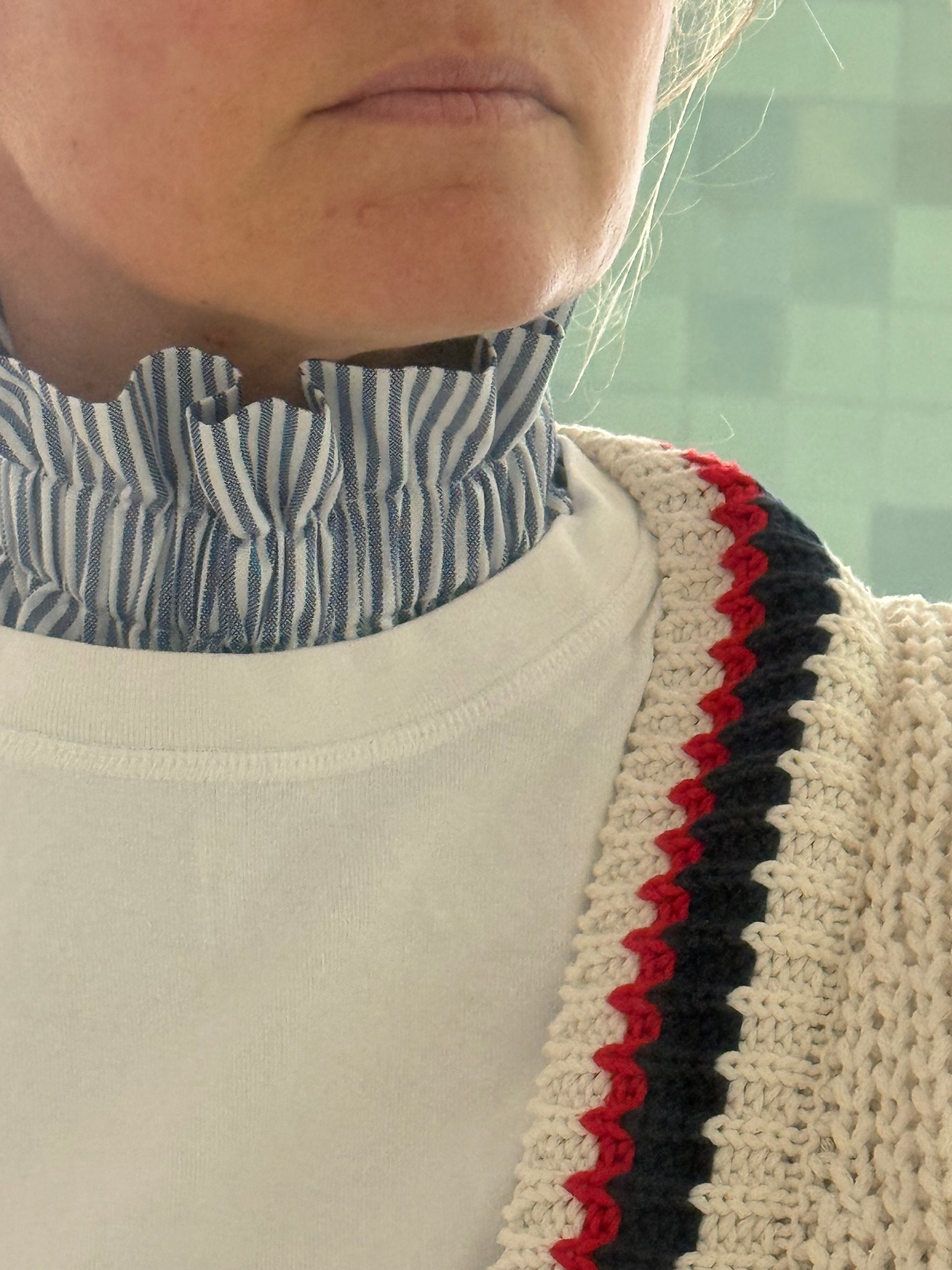Ajoutez une touche d'élégance et de caractère à vos tenues avec ce col amovible à rayures, un accessoire résolument intemporel.