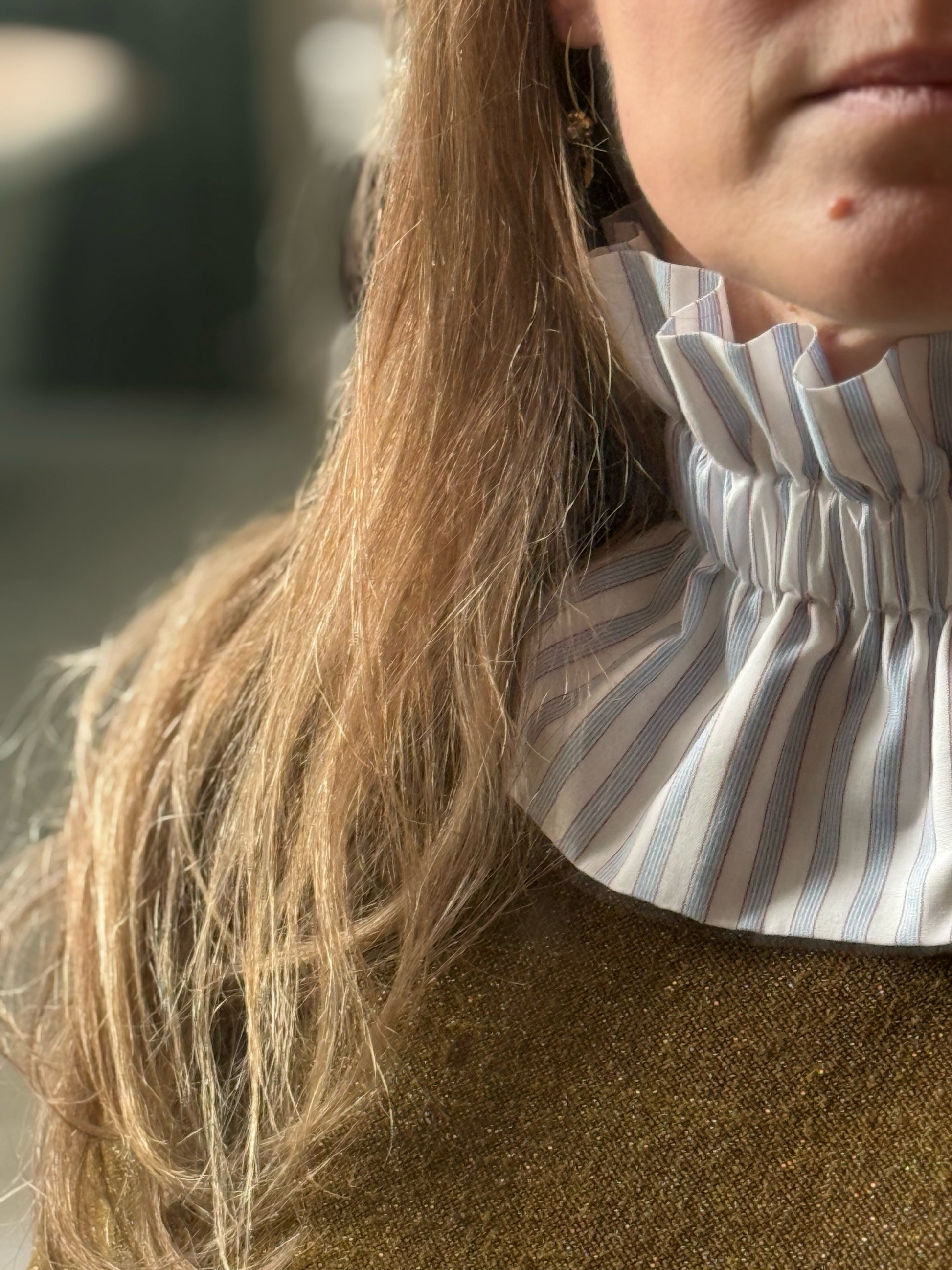 Pour vos journées de travail ou vos sorties casual chic, voici l'accessoire qui apporte instantanément de la structure. Notre col en coton rayé bleu et brun reprend l'esthétique classique de la chemise, tout en étant léger et agréable à porter.