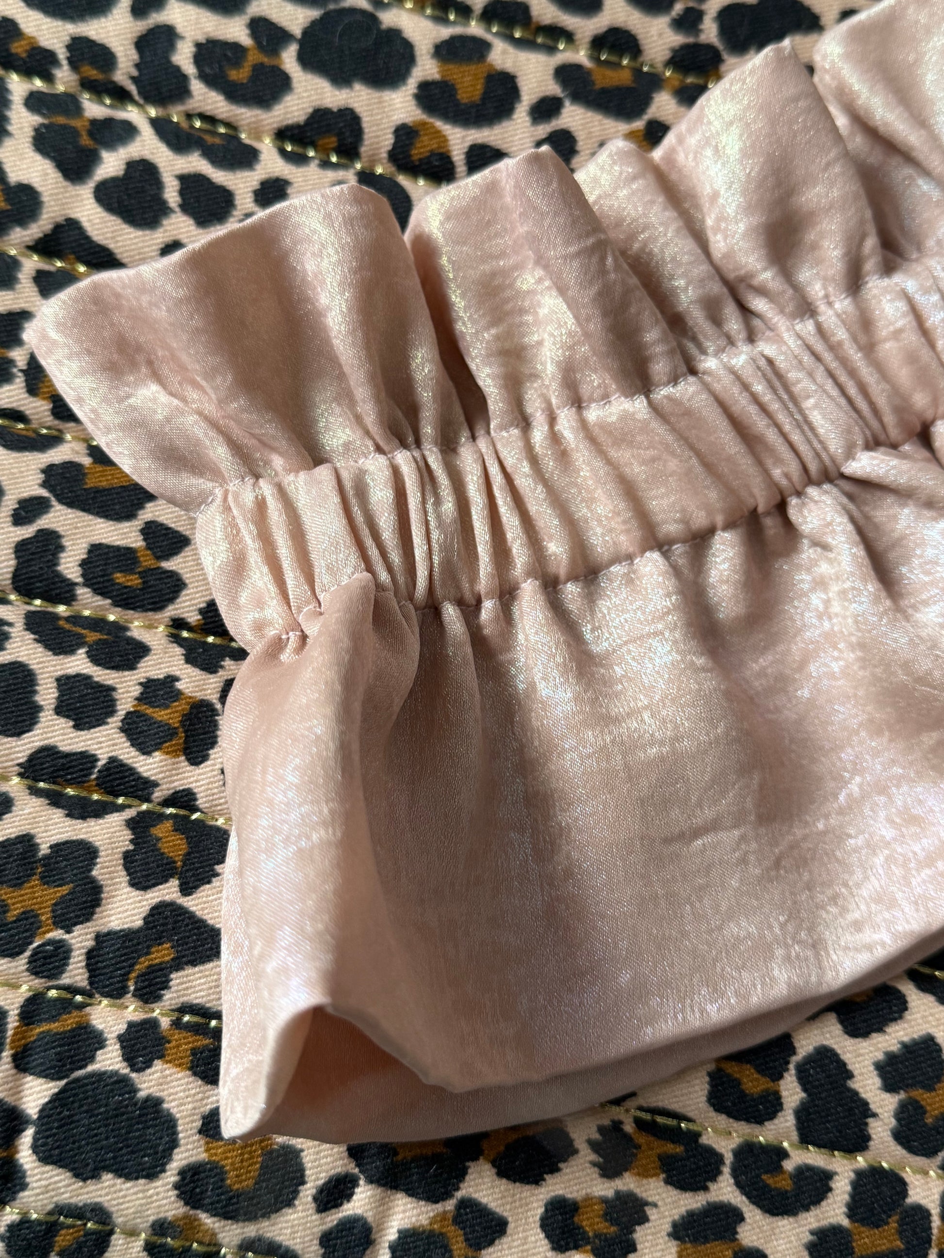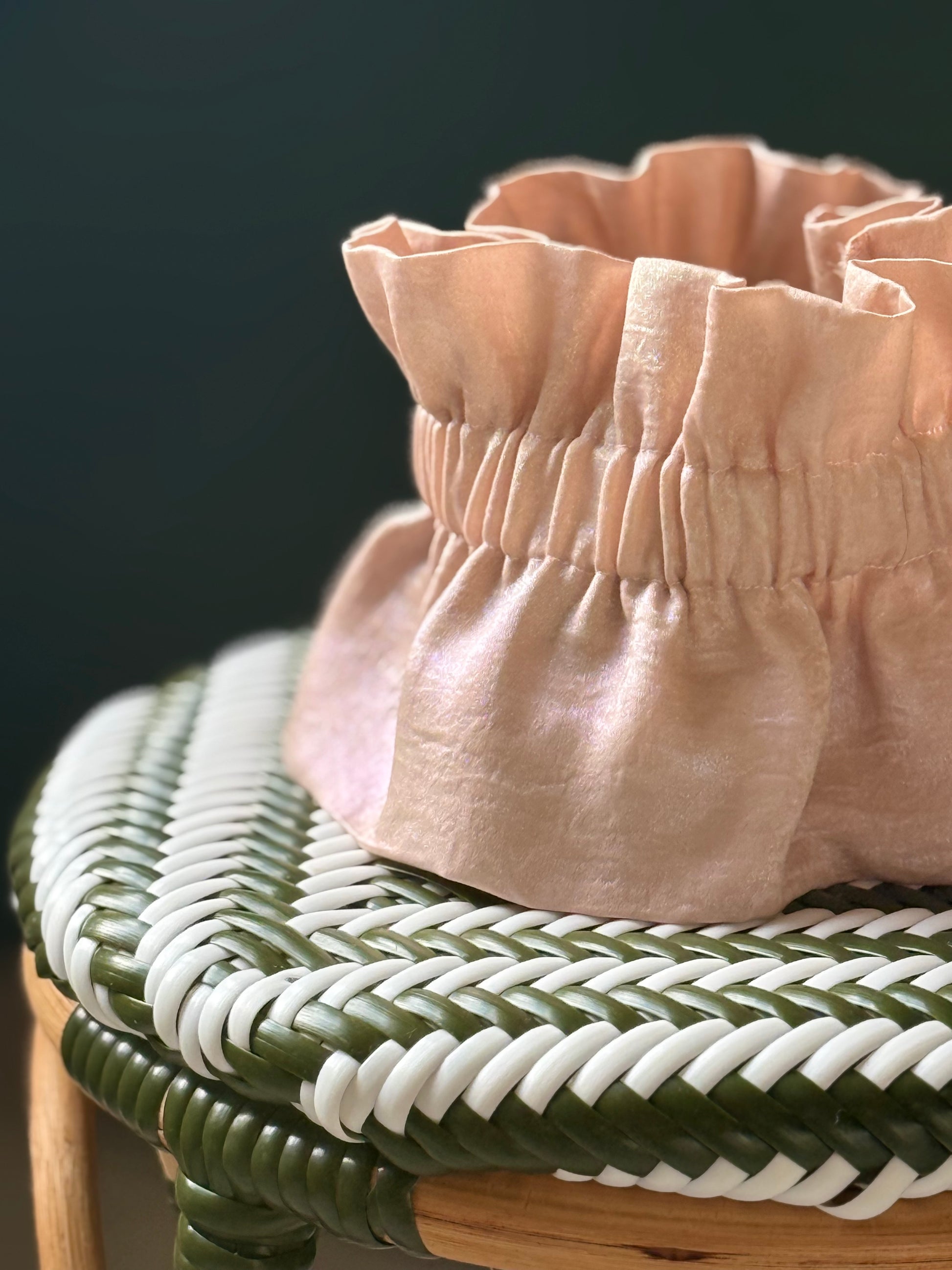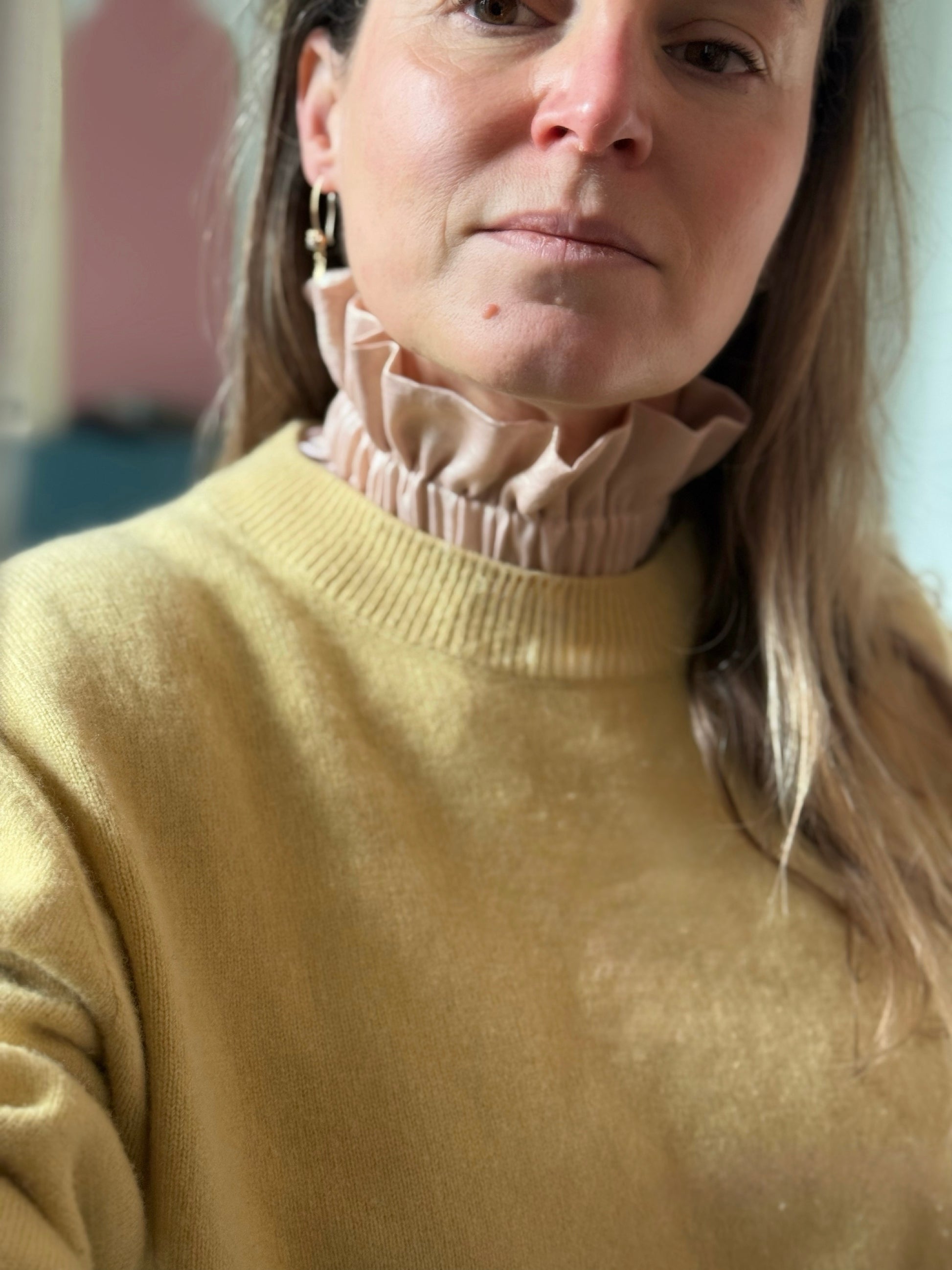 Adoptez l'éclat délicat de notre col rose en crêpe satiné. Sa matière fluide et son fini soyeux captent chaque lumière pour illuminer votre visage et apporter un éclat raffiné à vos tenues.