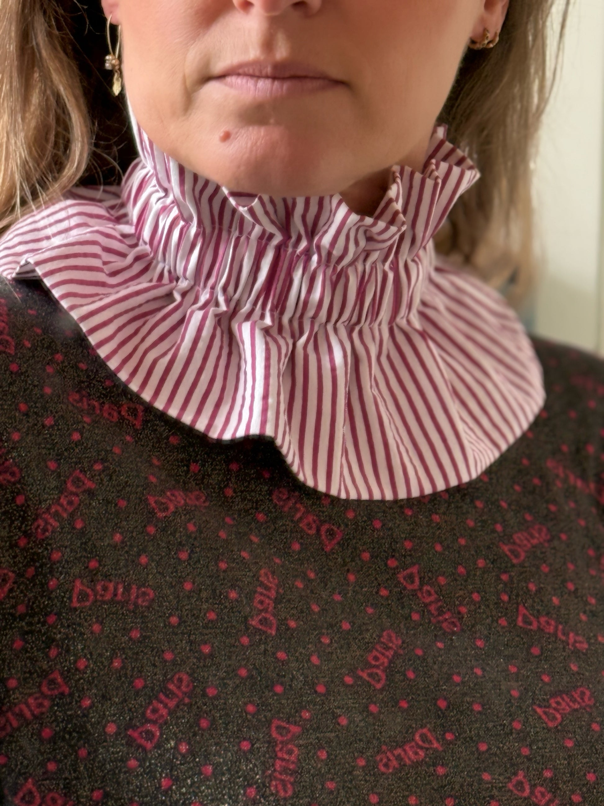 Ajoutez une touche d'élégance et de caractère à vos tenues avec ce col amovible à rayures, un accessoire résolument intemporel.