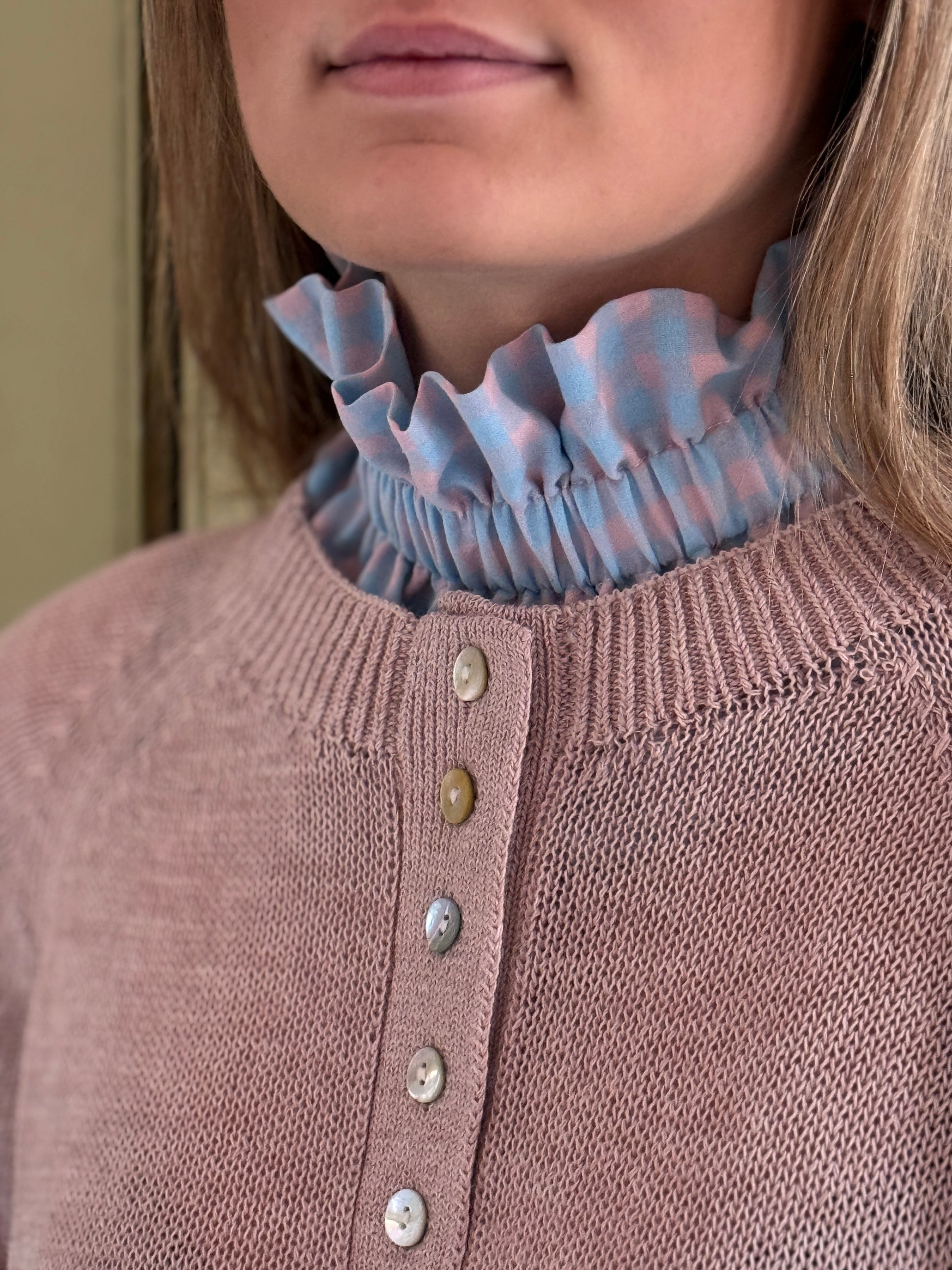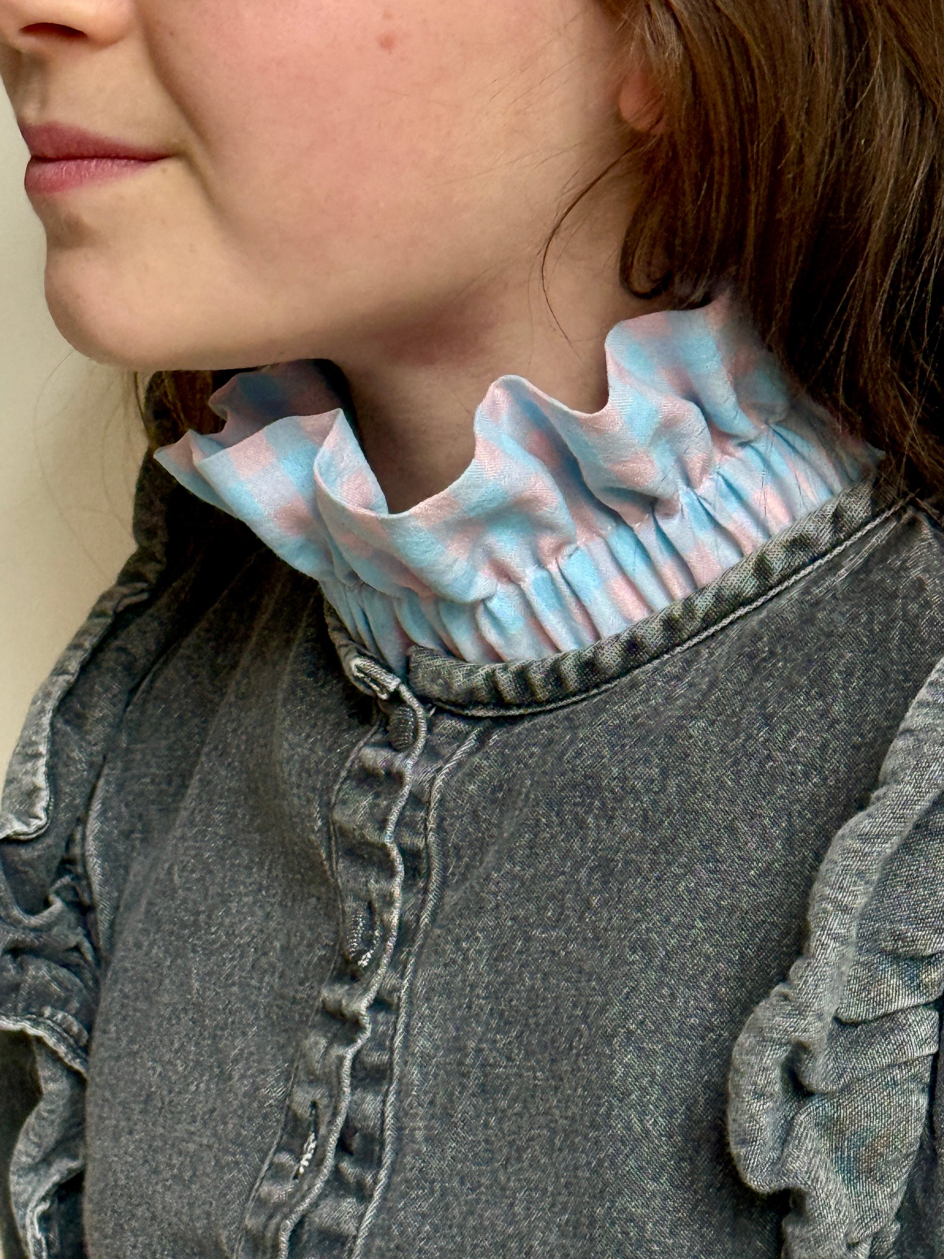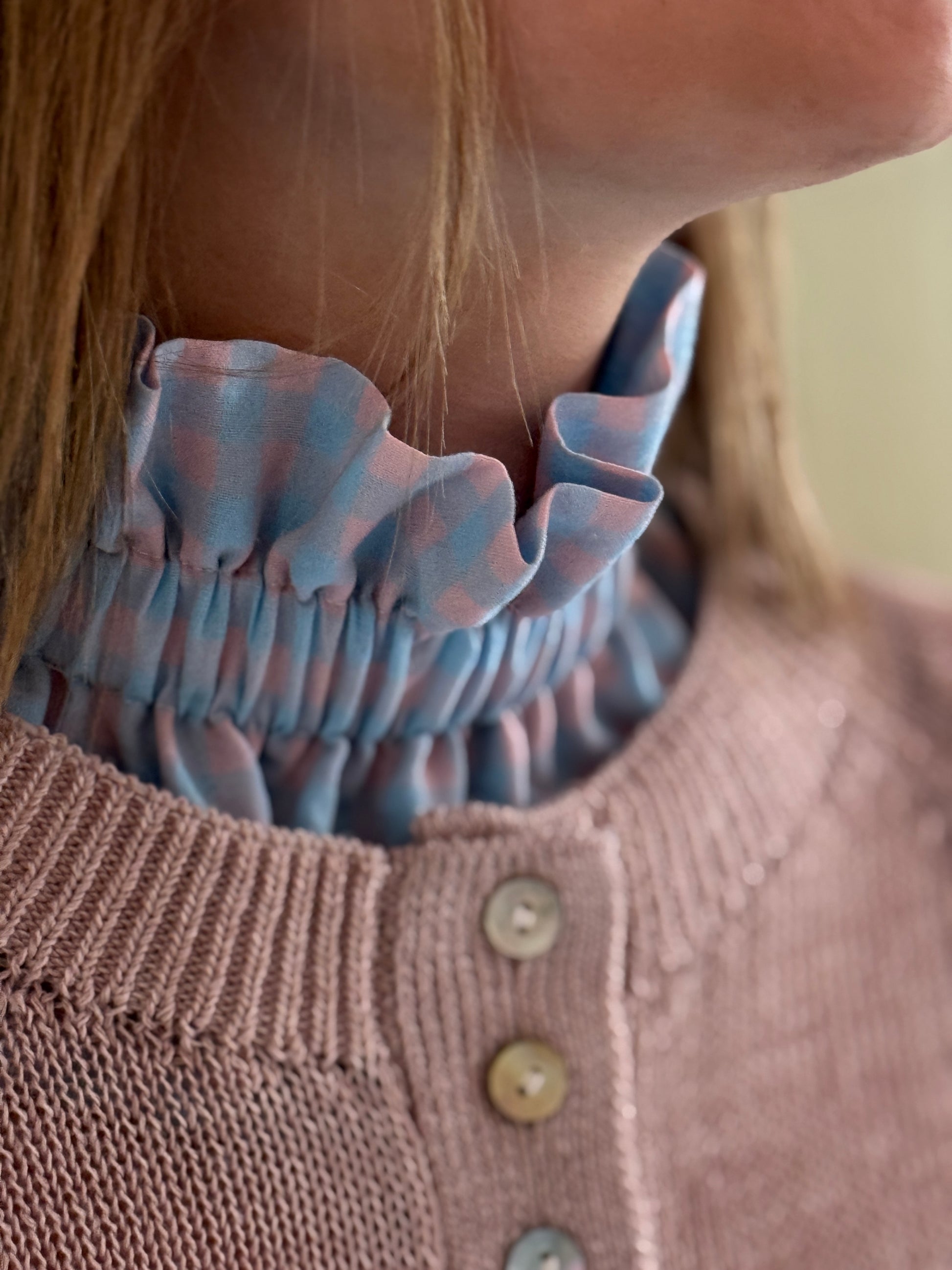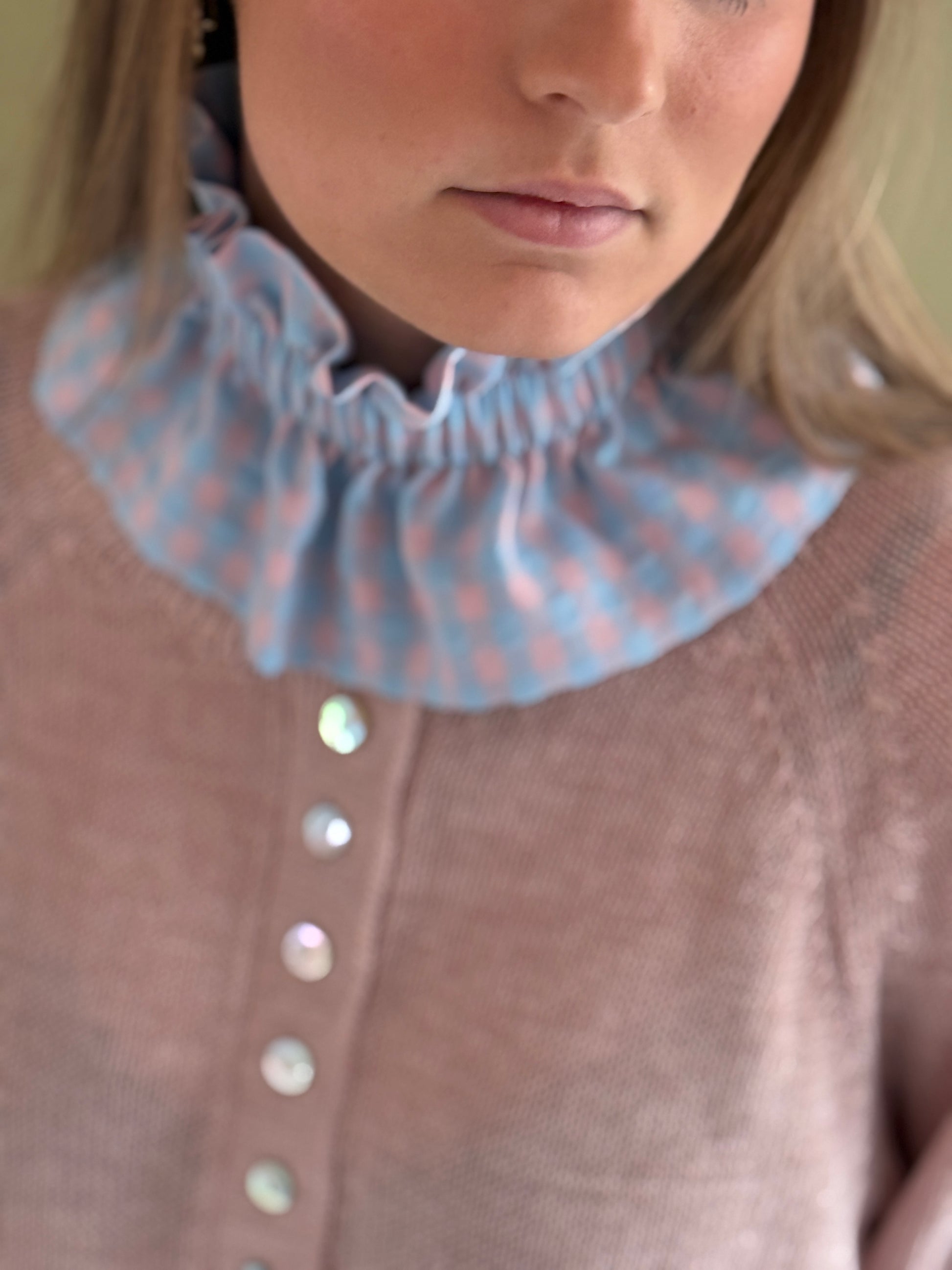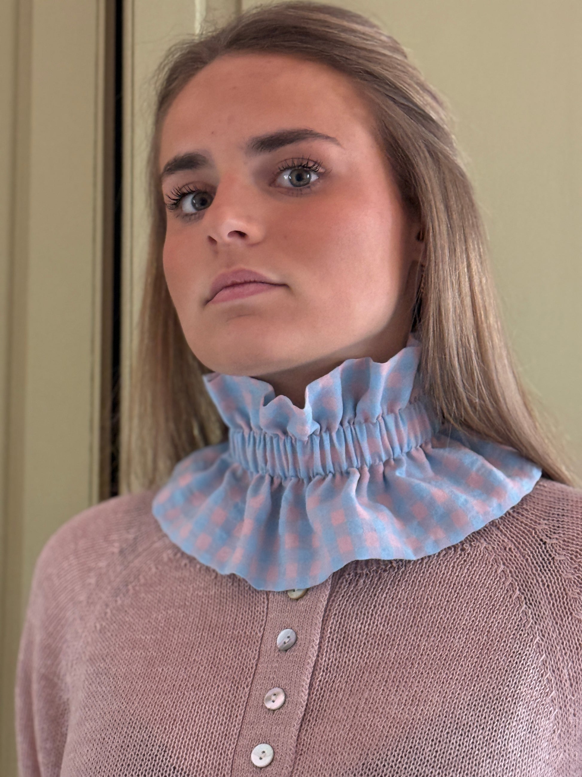 Accueillez les beaux jours avec la nouvelle collection Sorbet. Avec son alliance irrésistible de bleu glacier — la couleur phare de cette saison — et d’un rose tout doux, ce col en vichy apporte une bouffée d'air frais et de poésie à votre garde-robe.