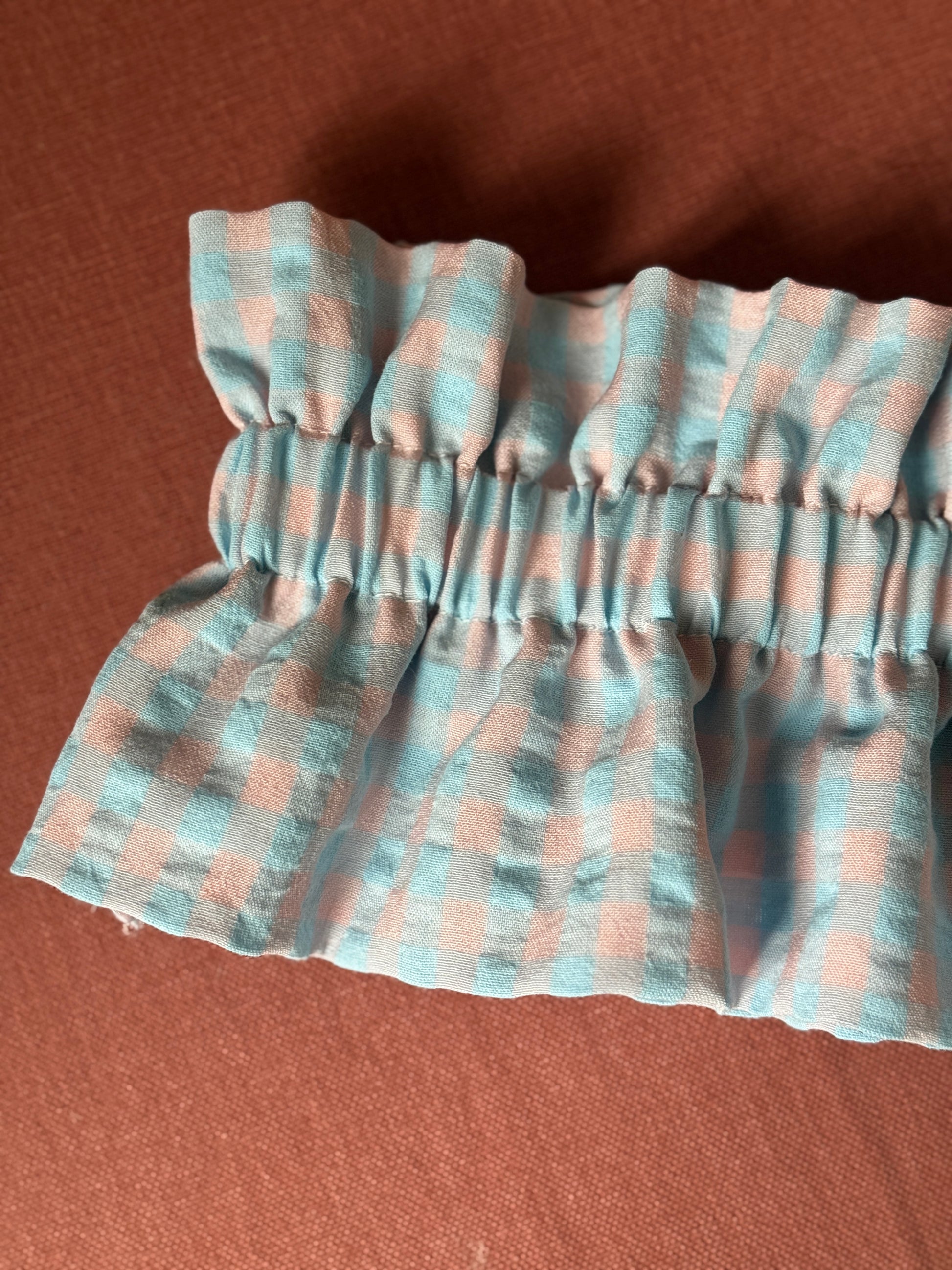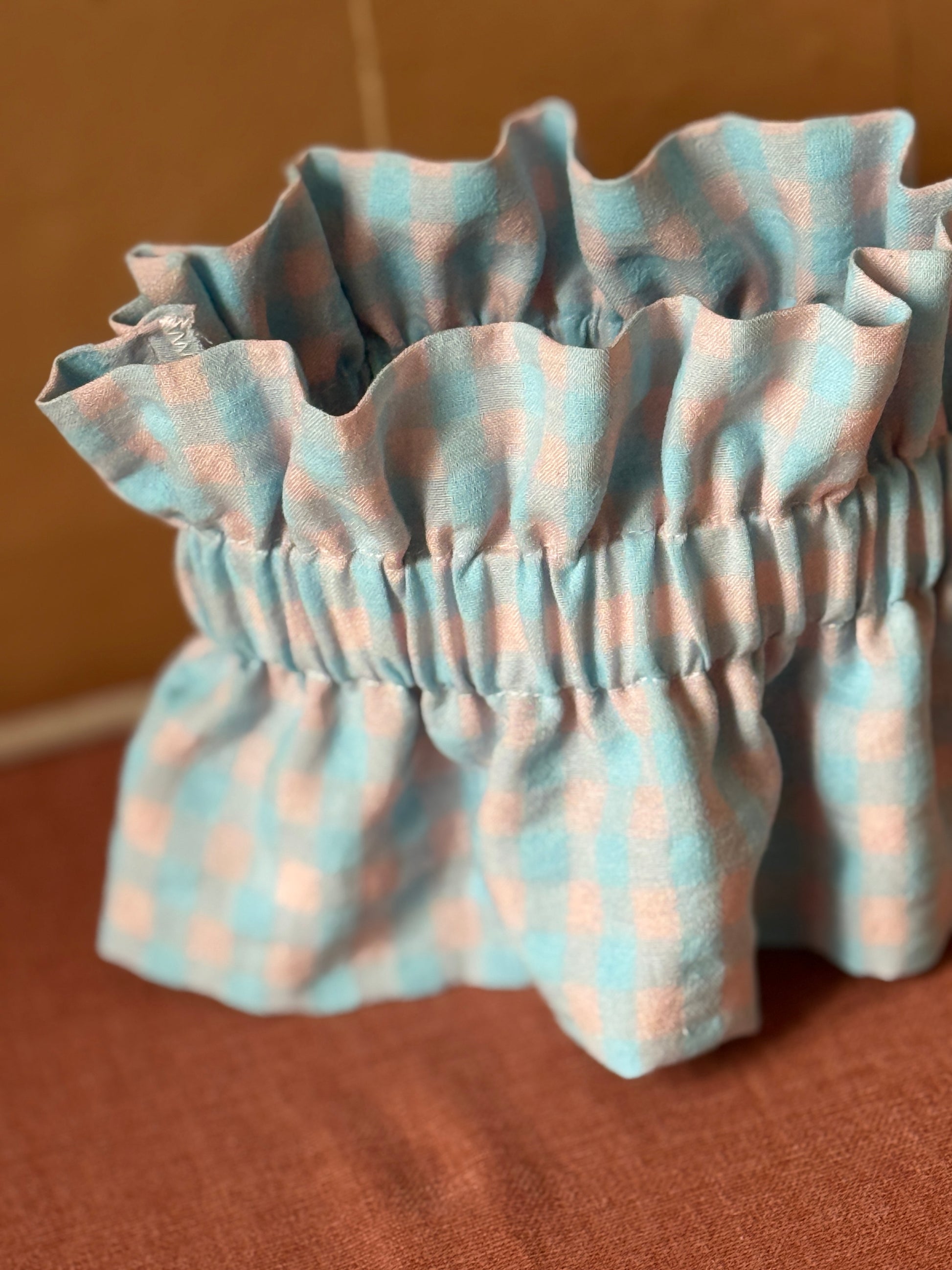 Le tissu en seersucker (coton gaufré) qui apporte un relief moderne et une légèreté irrésistible. C’est l’accessoire idéal pour celles qui veulent infuser une dose de joie et d'originalité dans leur quotidien.