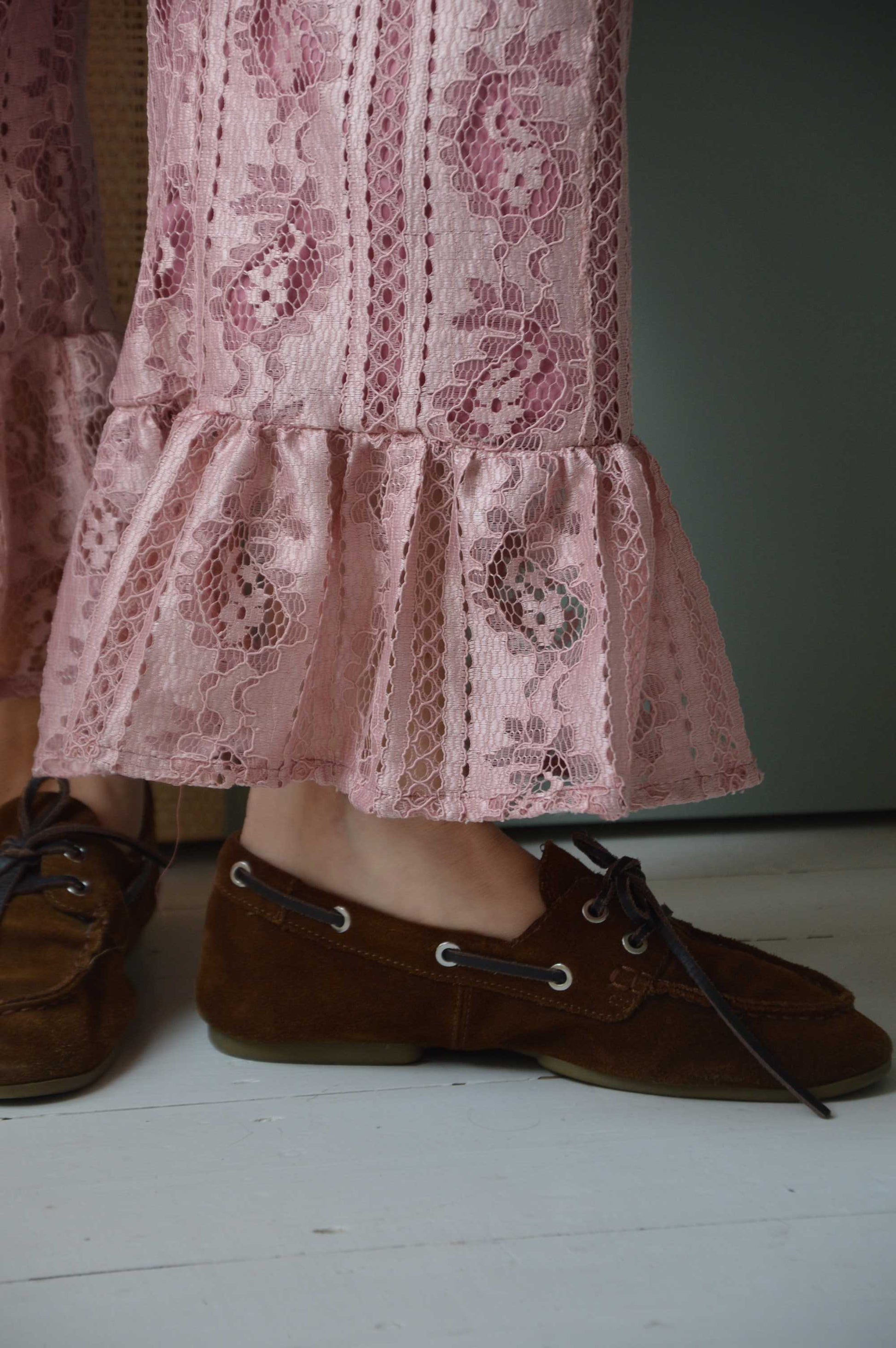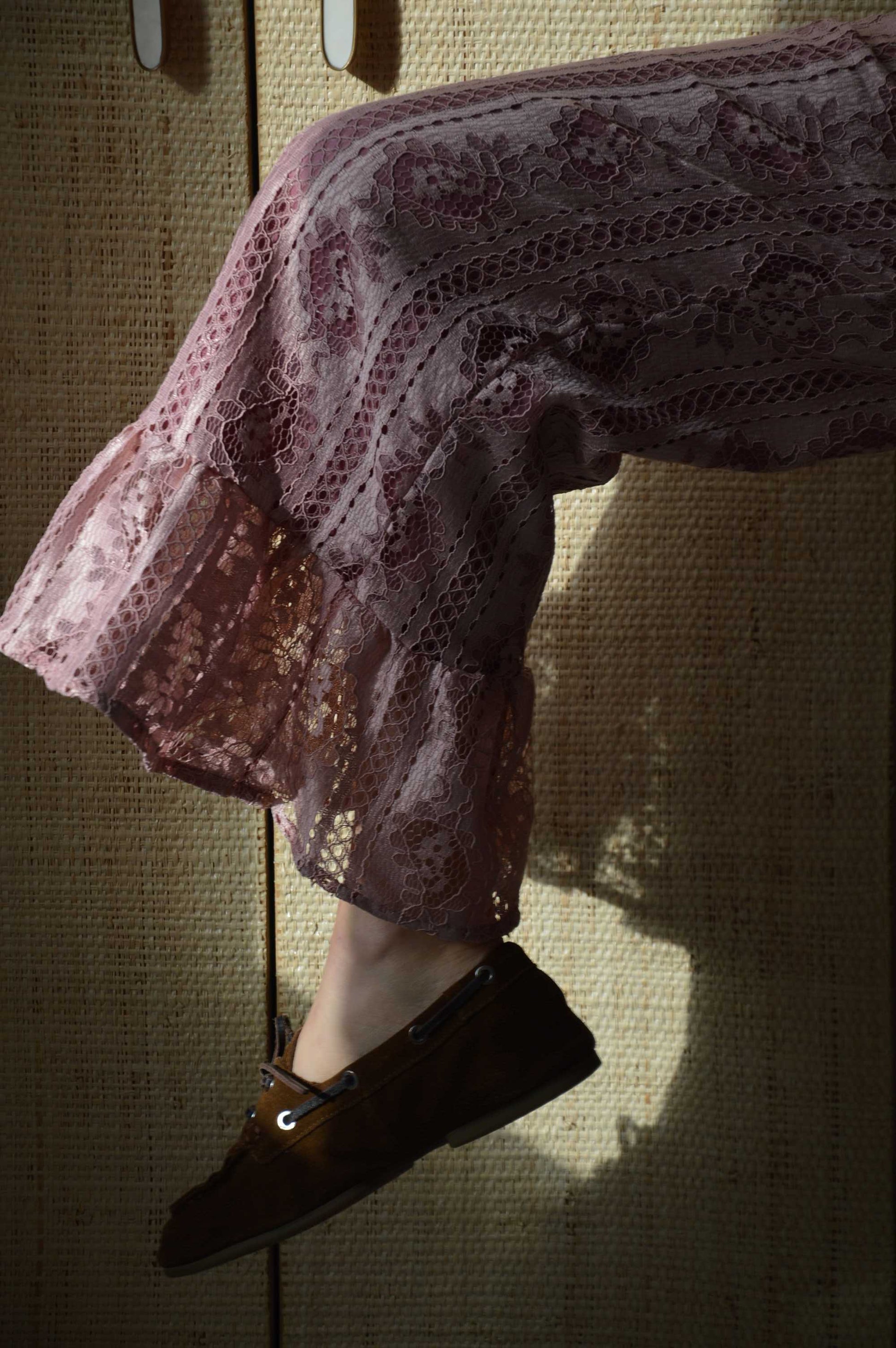 Pantalon Jeu de dentelle rose poudré