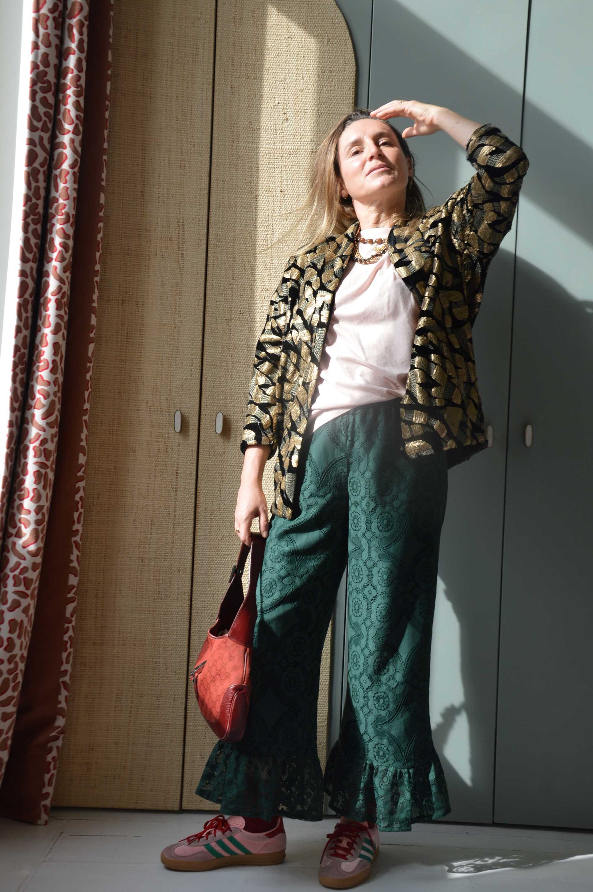 Optez pour une allure poétique et raffinée avec notre pantalon en dentelle , une pièce d’exception qui allie élégance intemporelle et confort absolu. Son tissu en dentelle délicate, subtilement texturée, révèle un jeu de transparence raffiné au niveau des volants placés en bas de jambe — un détail unique qui capture la lumière et sublime le mouvement.